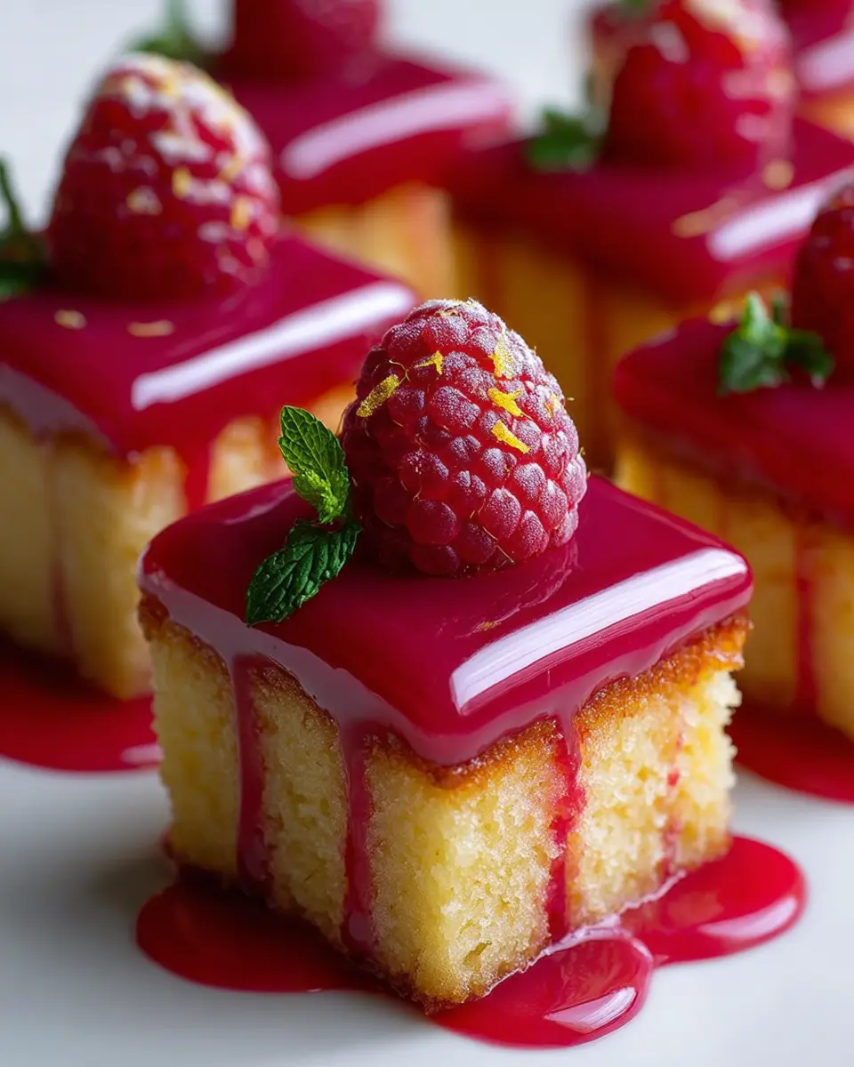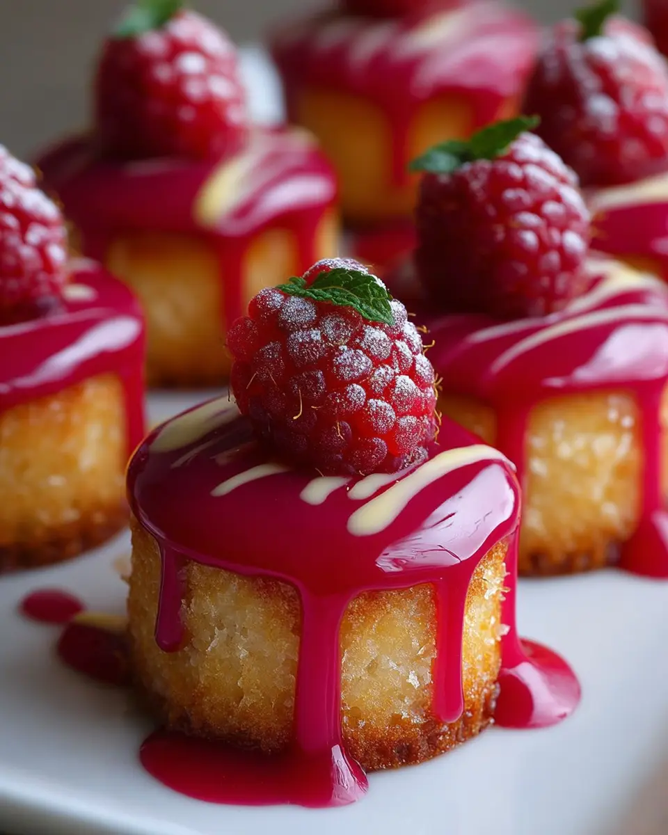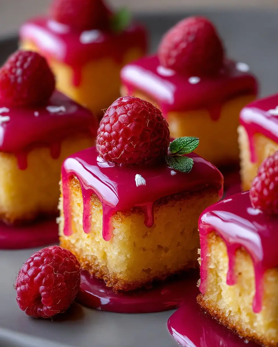 These little gems are not just a feast for the taste buds; their vibrant flavor combination will brighten even the dullest of days. With almond flour as the base, they maintain a gluten-free status, allowing more people to enjoy the decadence of cake without worrying about dietary restrictions. The lemon zest and juice infuse these bites with a refreshing tang, while the added raspberry mirror glaze takes them to an entirely new level of elegance.