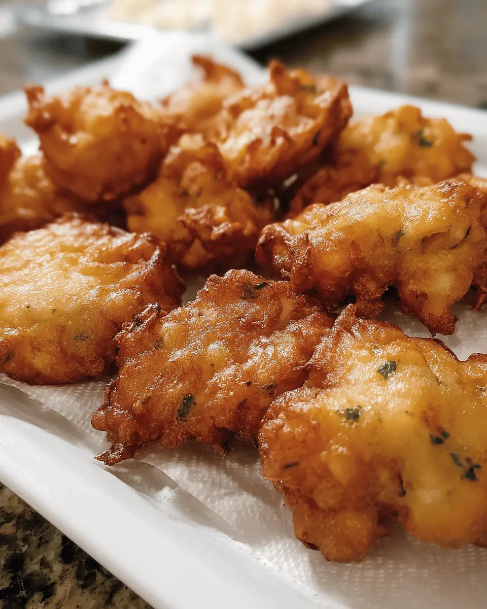 Once your oil is hot, it’s time for the fun! Drop spoonfuls of the batter into the oil, making sure to spread them out slightly to form fritters. Fry these delights in batches, turning them occasionally until they are golden brown and crisp on both sides. This usually takes about 3-4 minutes per side. The smell wafting through your kitchen will be utterly captivating!