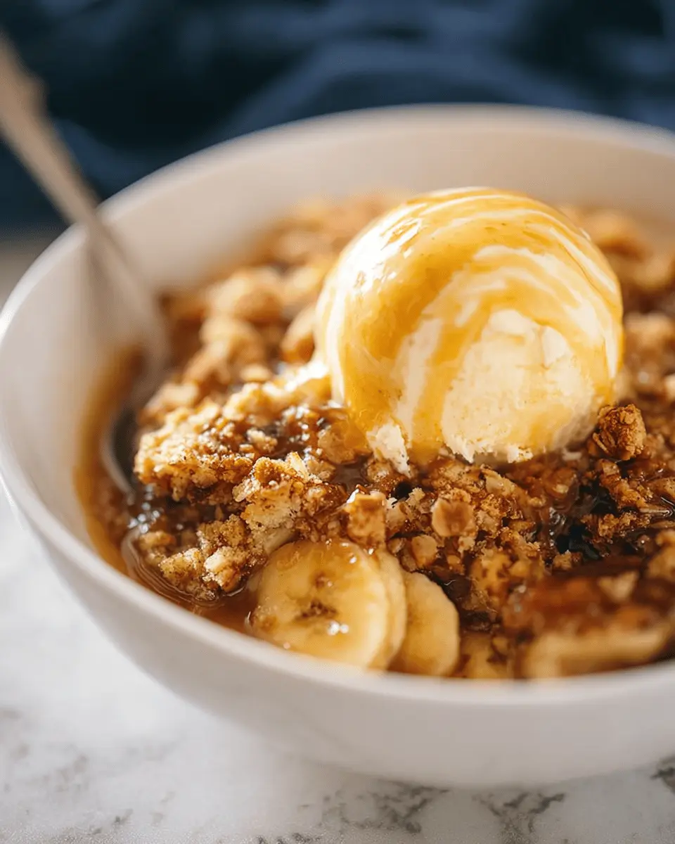 Want to take your banana crumble to the next level? Consider sprinkling a dash of cinnamon or a drizzle of caramel sauce atop your serving. Chopped nuts can add a lovely crunch, while fresh mint leaves can provide a pop of color and flavor. You could even serve it in an elegant parfait glass for a fun presentation. Experiment with these garnishes, and let your creativity shine!
