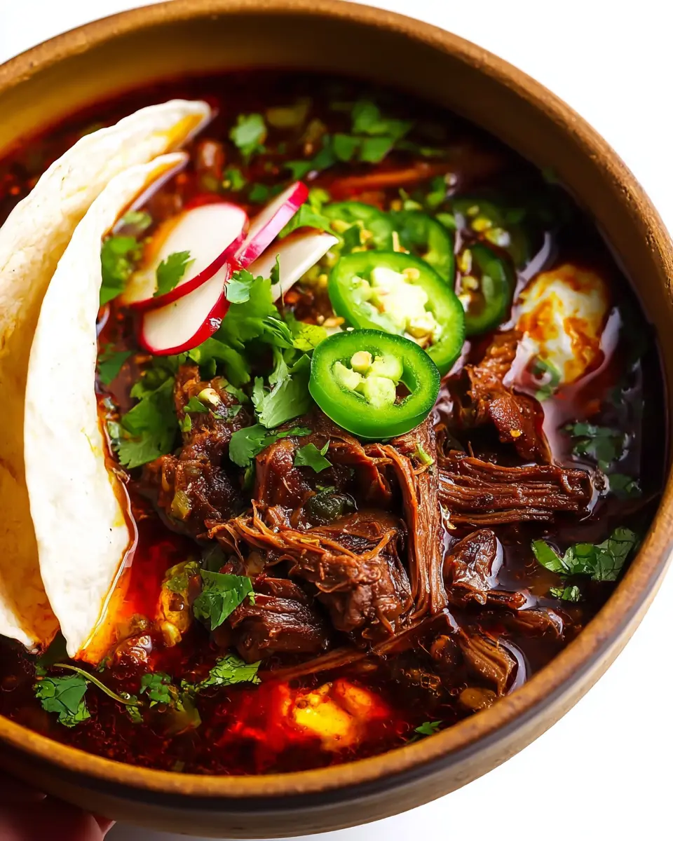 Elevate your birria recipe with a medley of fresh toppings! Consider adding: