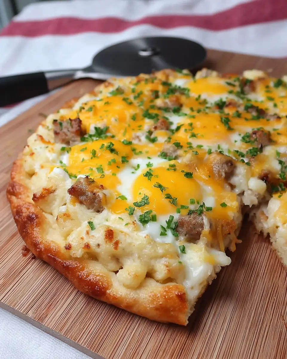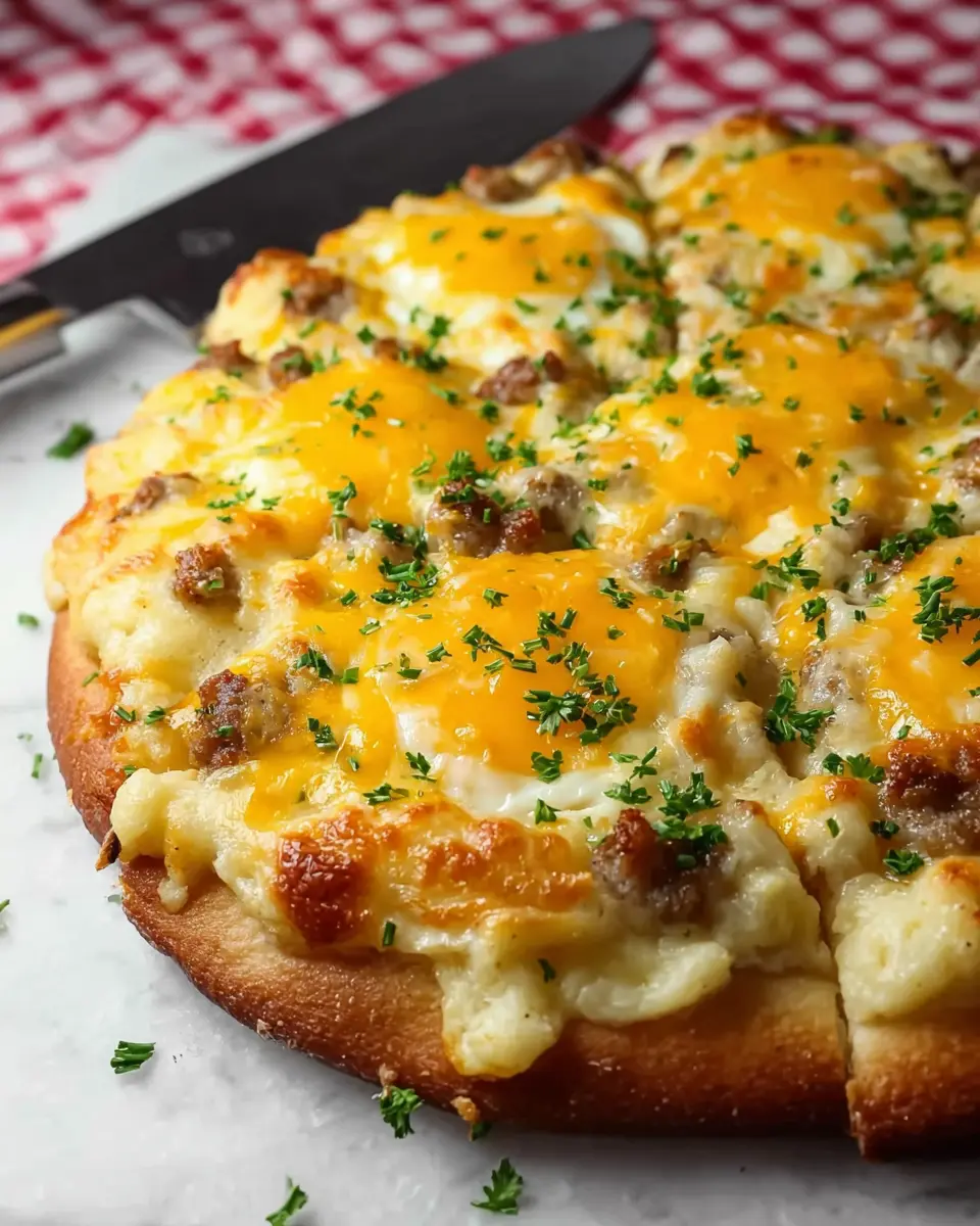 So, what exactly is this breakfast delight? It starts with a crispy pizza crust, generously topped with rich sausage gravy, scrambled eggs, and melty Cheddar cheese. This twist on the traditional breakfast means you can savor all the flavors you love while enjoying the versatility of pizza. It’s perfect for lazy Sunday mornings or as a crowd-pleasing dish for brunch with friends.