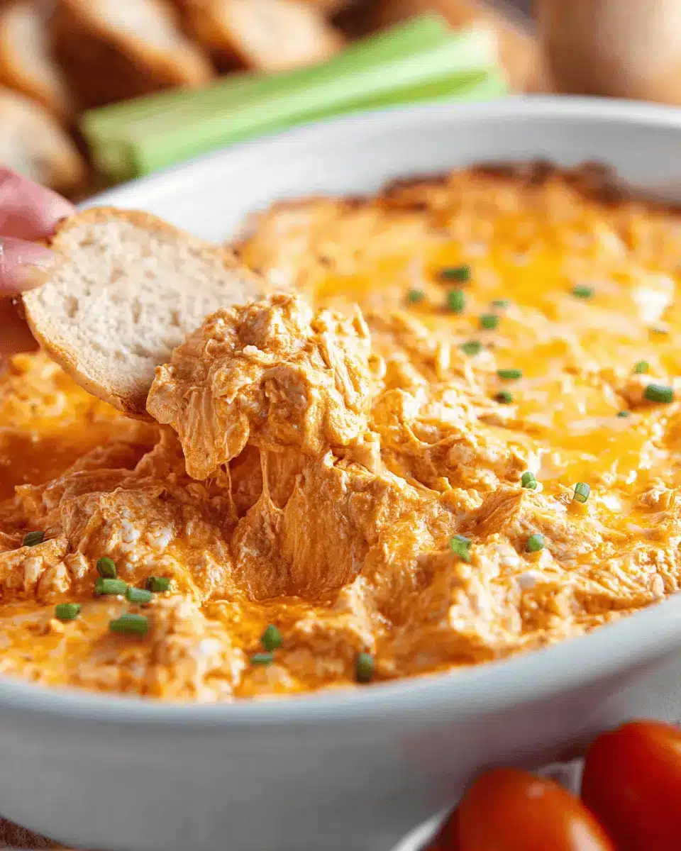 No wonder Buffalo Chicken Dip is a staple at gatherings! Want to impress your guests? Stay tuned for the full recipe below.