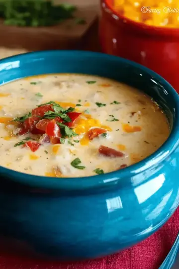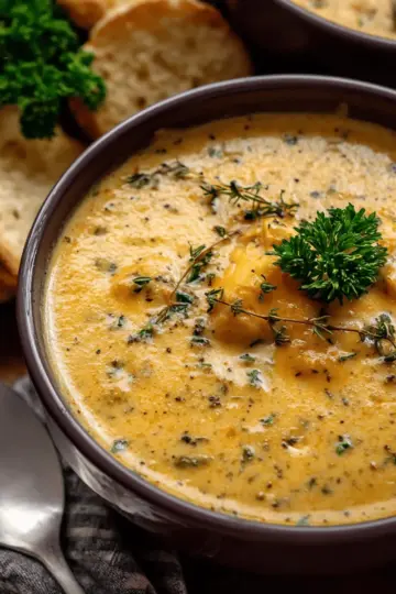 Hearty Cheddar Garlic Herb Potato Soup with Turkey Bacon Delight