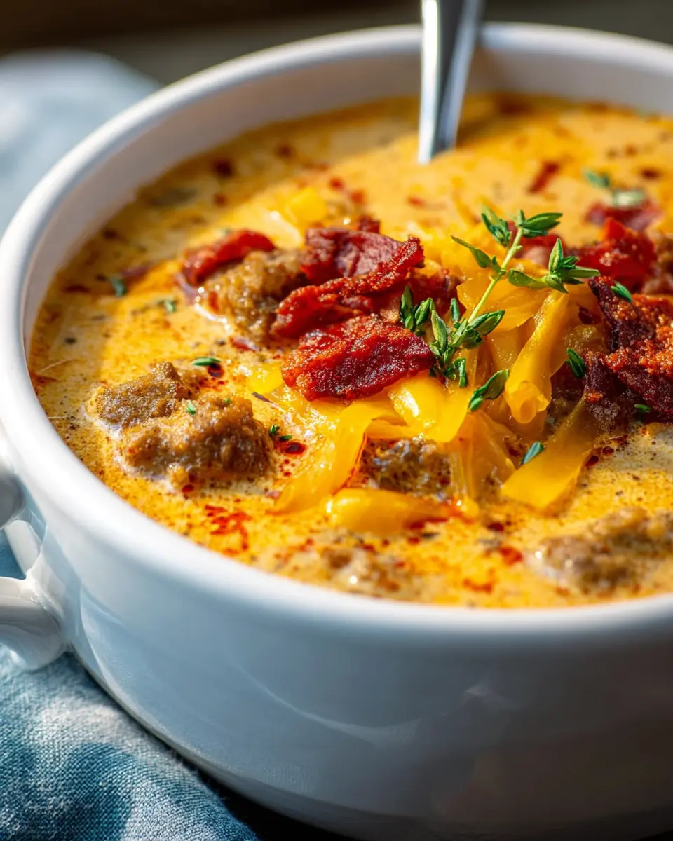 Cheeseburger soup is a delightful twist on a classic favorite that brings warmth and comfort to any dining table. This creamy, savory dish is perfect for chilly evenings when you’re craving the flavors of a cheeseburger but want something a little different. Think of it as all your favorite burger ingredients mingling in a hearty broth, topped with gooey cheese and crispy turkey bacon. With its rich, satisfying texture, cheeseburger soup feels like a big hug in a bowl.