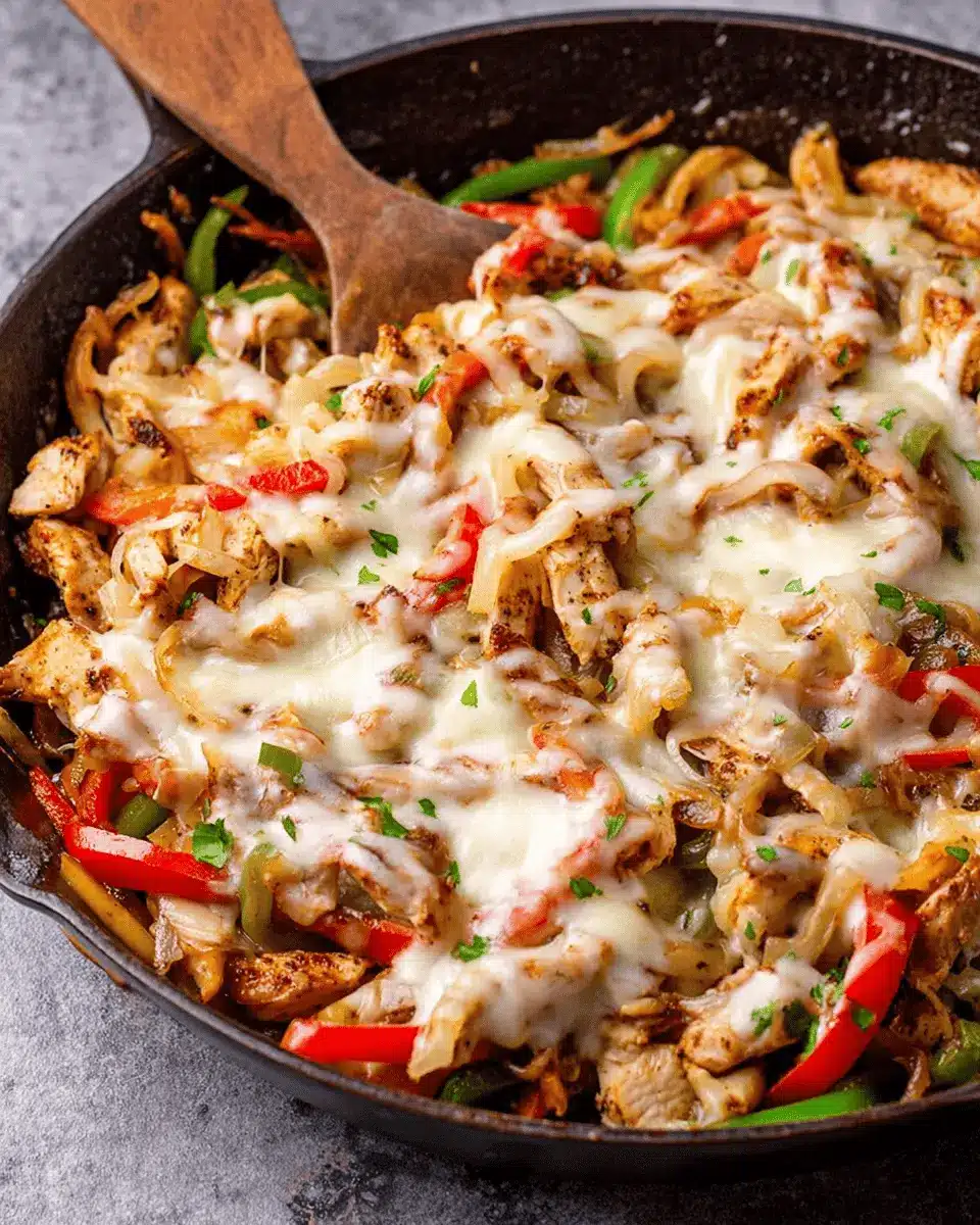 If you’re looking for a meatless option, try a vegetarian version by substituting the chicken with hearty mushrooms. Varieties like portobello or cremini offer a robust texture that holds up well in this skillet. Sauté them until beautifully browned, then follow the same steps as your traditional Chicken Cheesesteak Skillet. You can even toss in some spinach or kale for added nutrients and a pop of color. With these variations, everyone can enjoy this versatile dish!