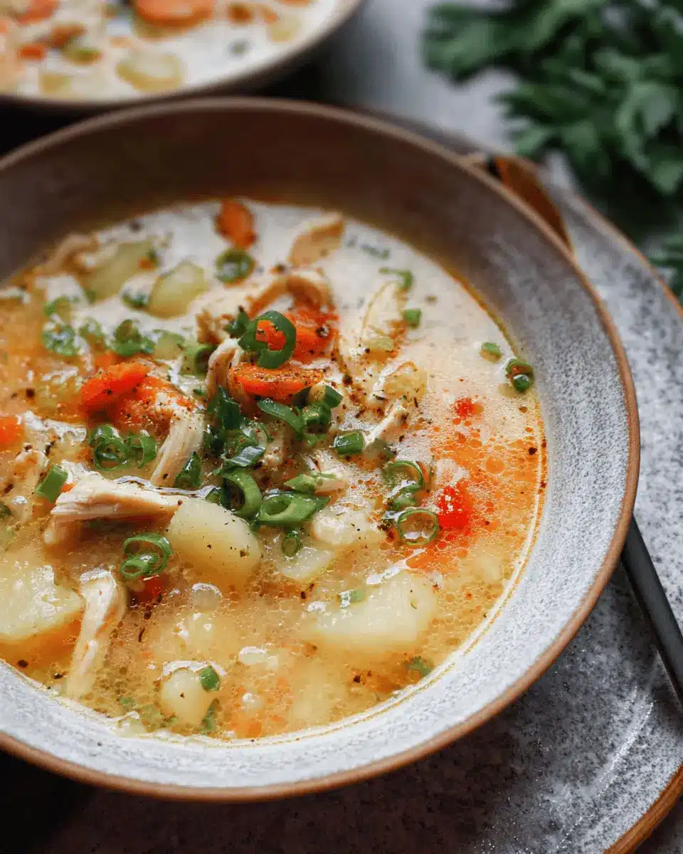 If you’re looking to ignite your taste buds, why not spice things up? Simply add diced jalapeños or a pinch of cayenne pepper to your base ingredients. You can also mix in some chili powder for a deeper, smokier flavor. This variation is not just comforting but also invigorating, making it a great meal option for chilly evenings. Want a little more zing? A squeeze of lime juice just before serving can elevate your Chicken Potato Soup to a whole new level!