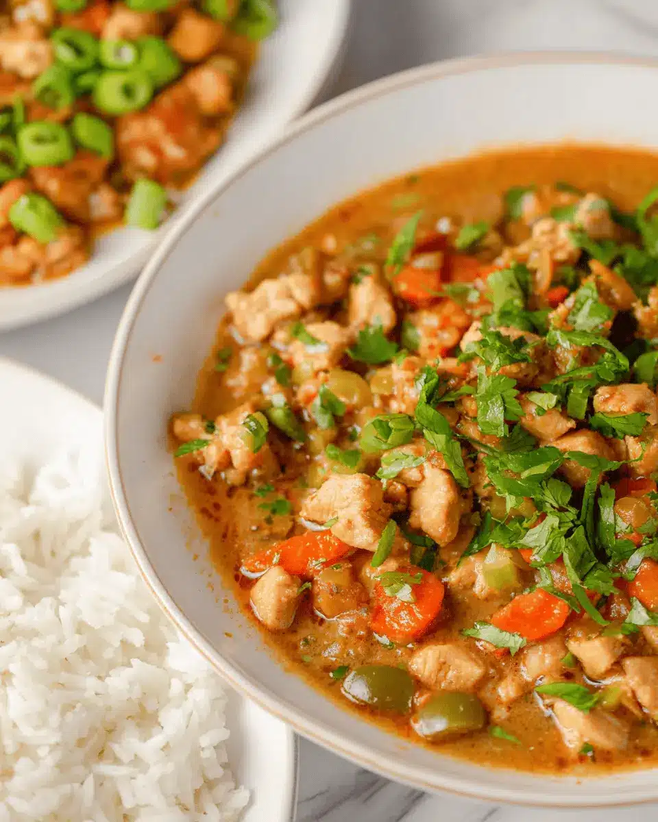 Absolutely! Coconut Chicken Chili is perfect for meal prep. You can make it a day or two ahead and store it in the fridge. In fact, the flavors tend to deepen and improve over time. Just reheat gently on the stove, adding a splash of water if it thickens too much.