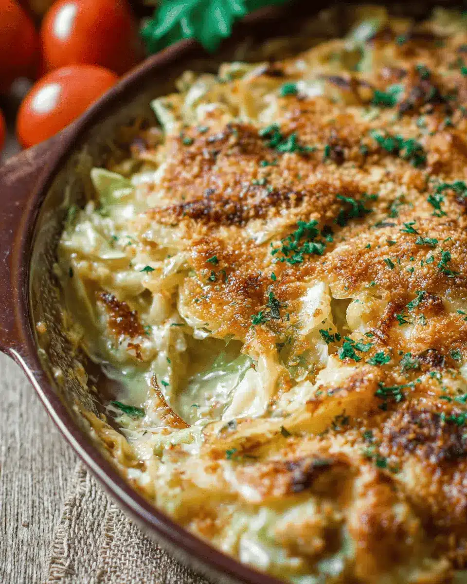 Elevate your creamy cabbage casserole further with various toppings. A sprinkle of crispy Turkey Bacon or Chicken Ham adds a delightful crunch and savory kick. You might also enjoy garnishing with fresh herbs like parsley or chives for an aromatic lift. If you’re a cheese lover, a light dusting of Parmesan before baking offers an irresistible cheesy crust. These simple additions can transform your dish into an even more delightful indulgence!