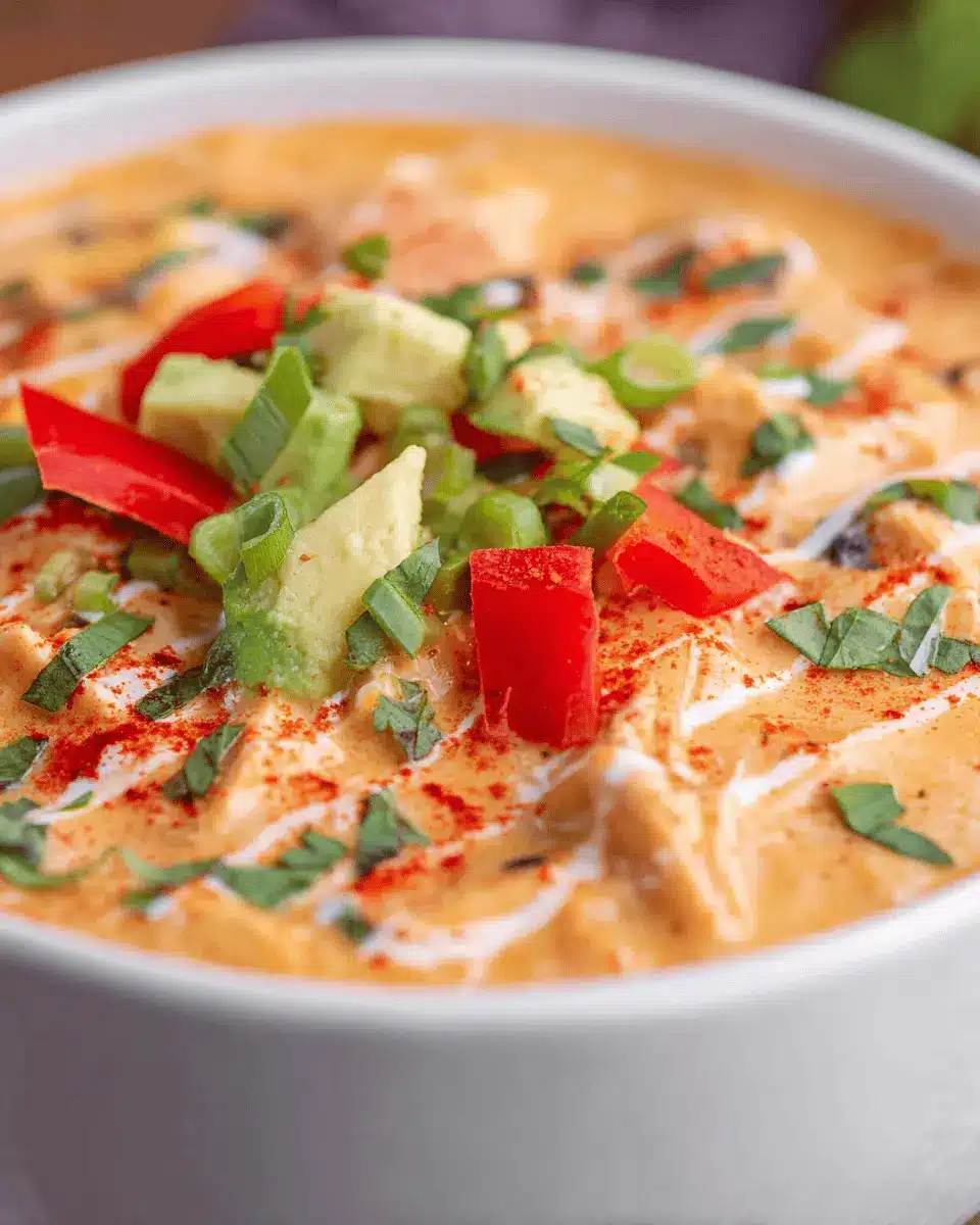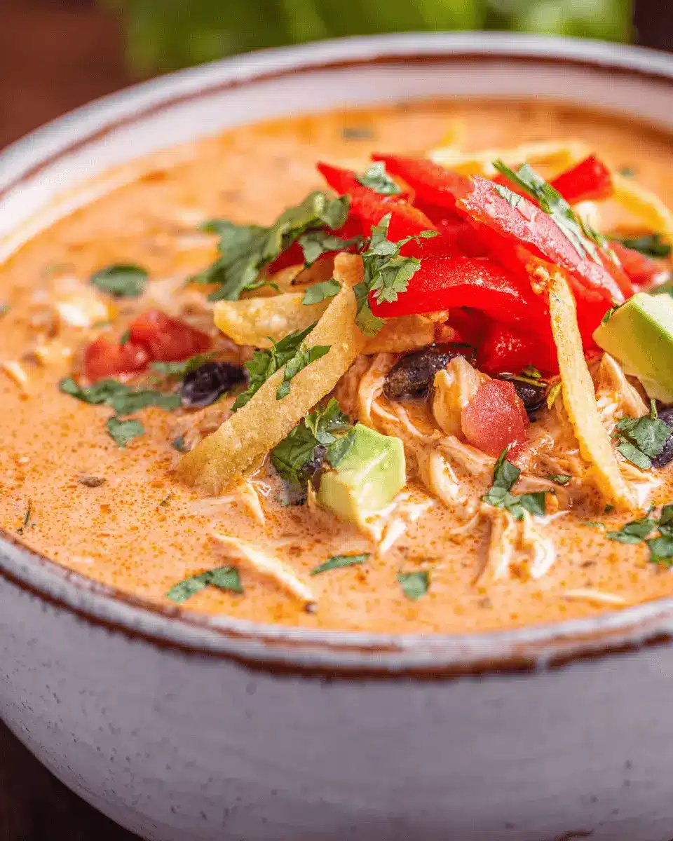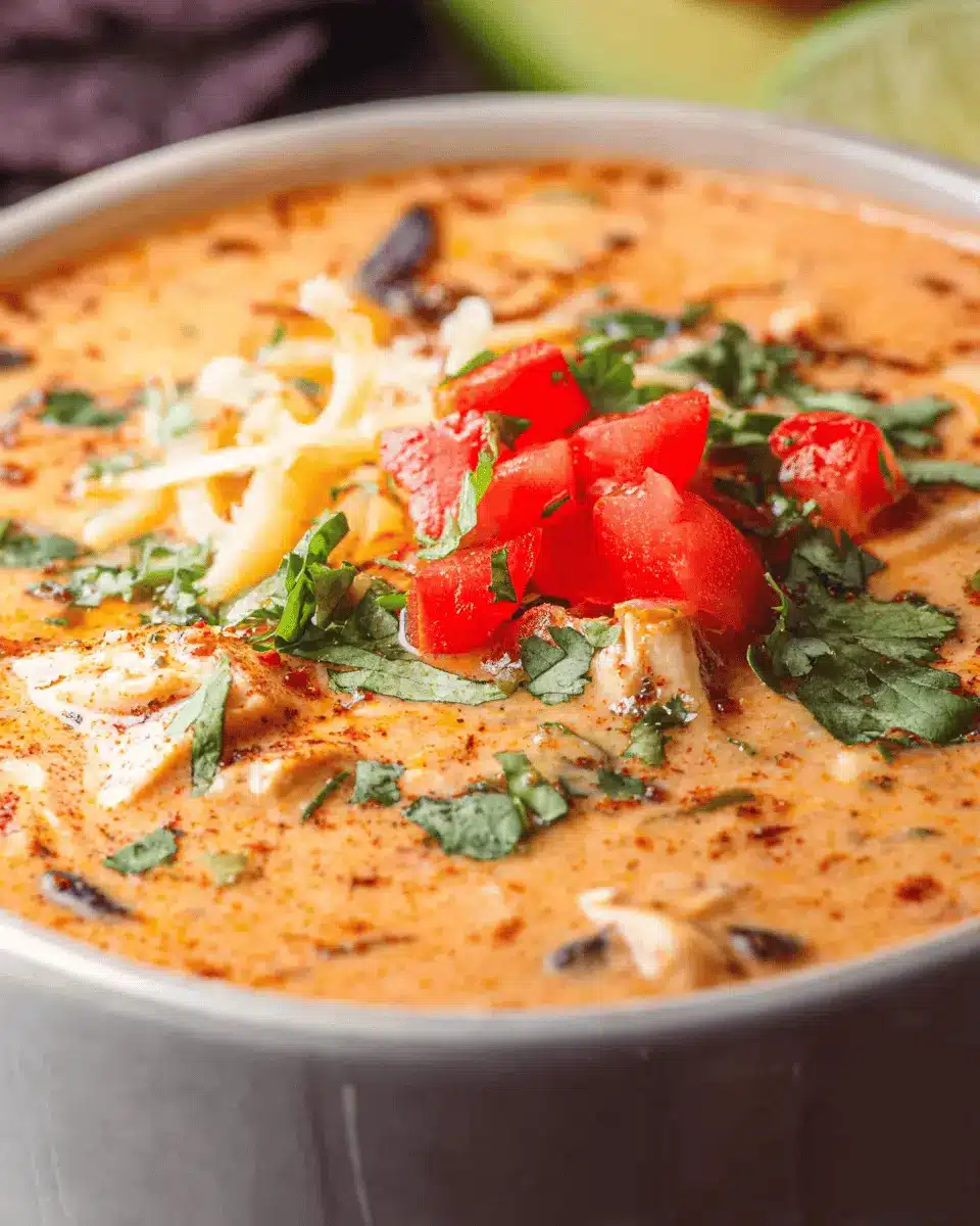If you’re looking to treat yourself to a cozy evening at home or wow your guests, this creamy chicken enchilada soup is sure to impress!