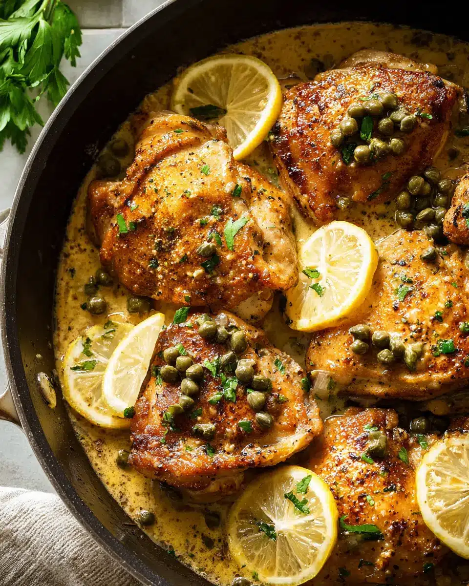Creamy Lemon Garlic Chicken Thighs with Capers