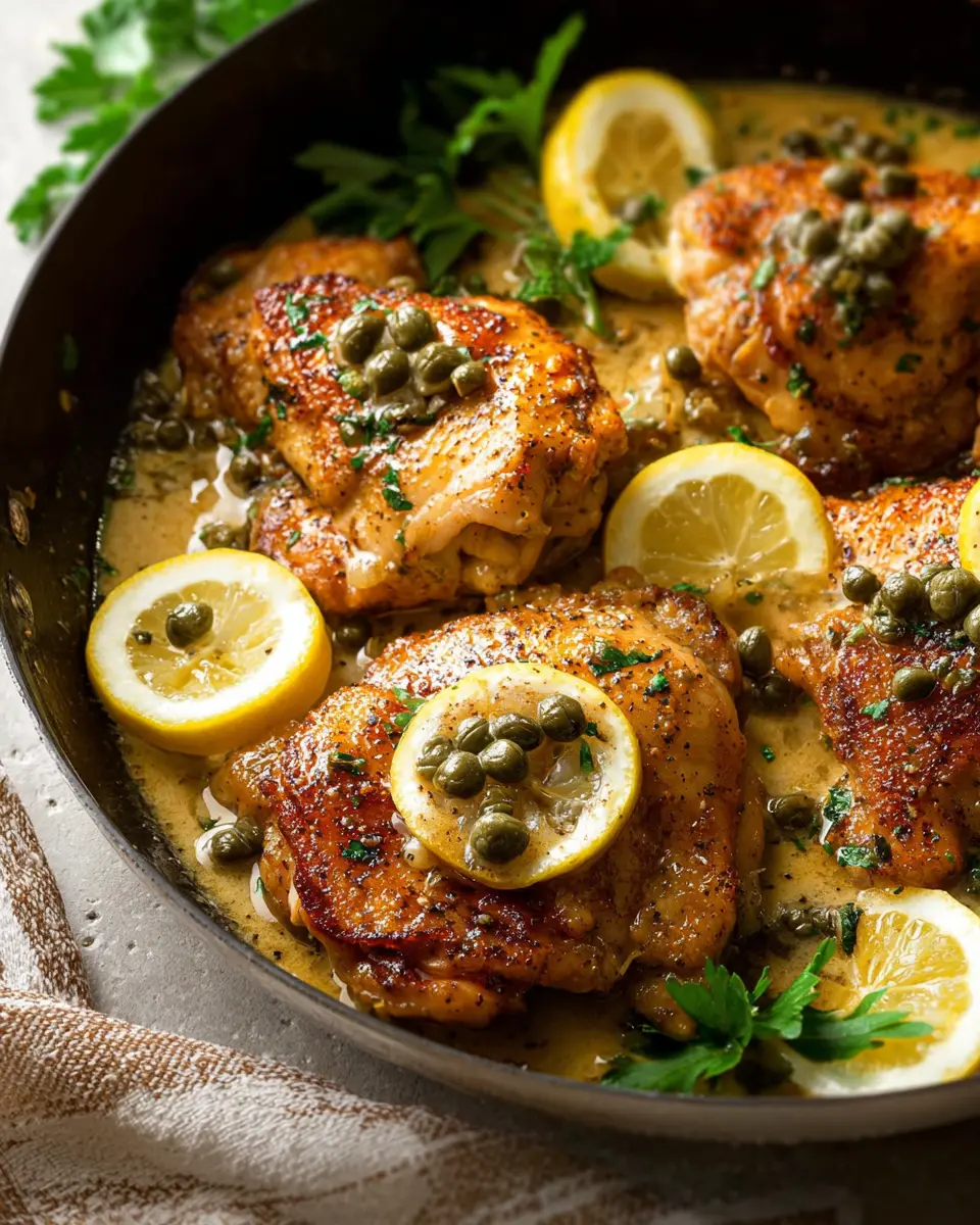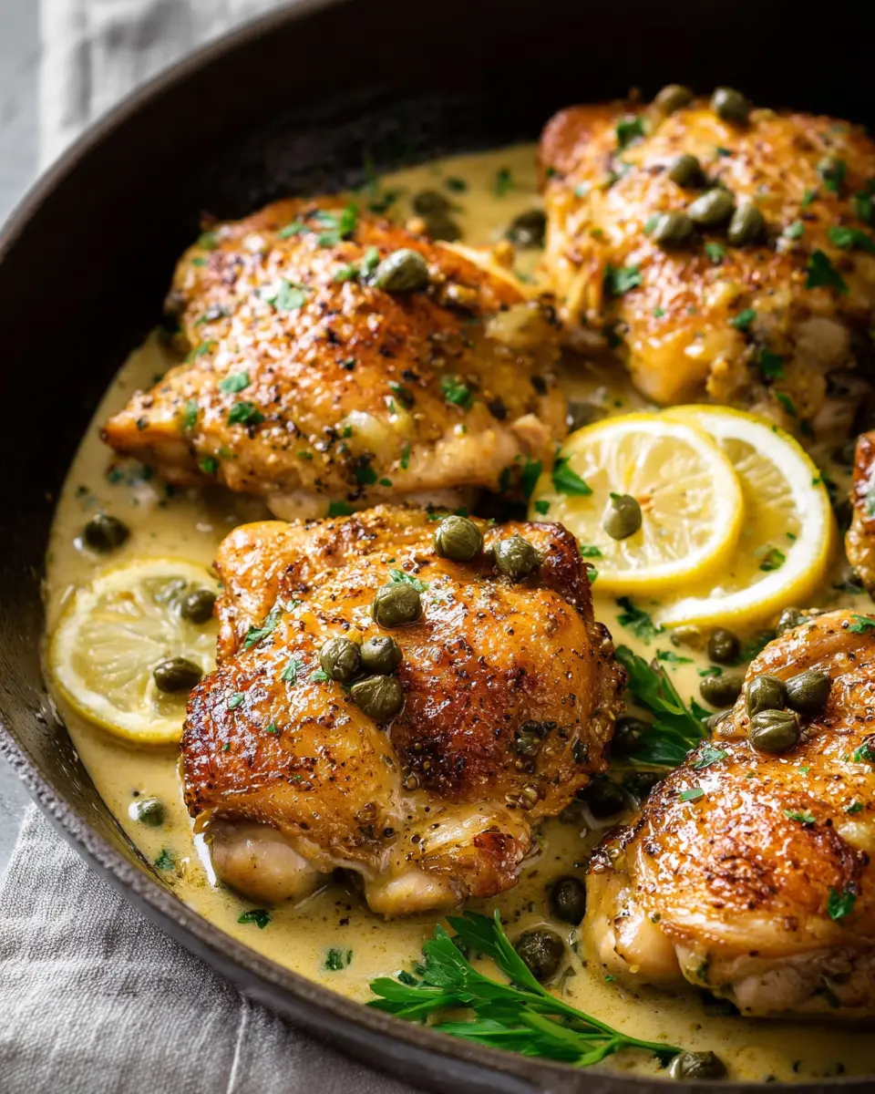 Creamy Lemon Garlic Chicken Thighs with Capers