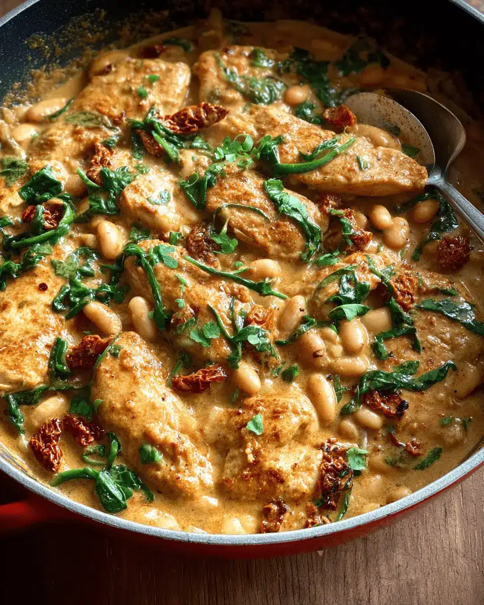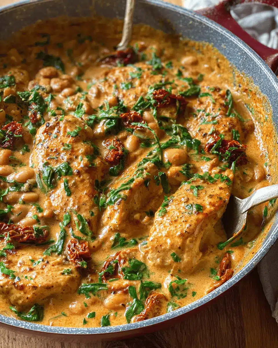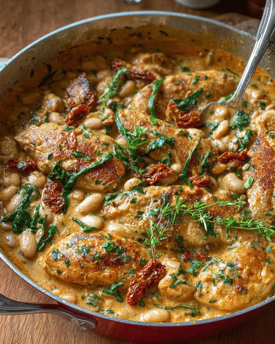 Creamy Tuscan Chicken + Butter Beans with Sundried Tomatoes