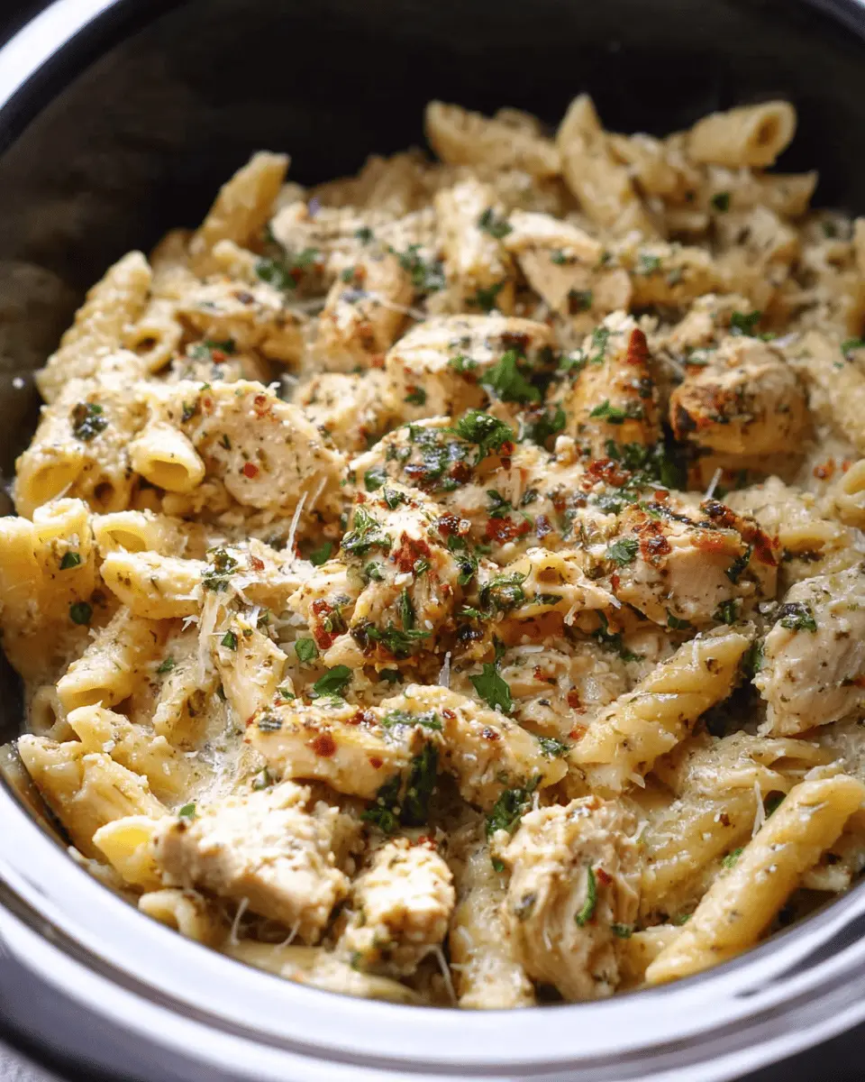 Introduction to Crockpot Parmesan Garlic Chicken Pasta