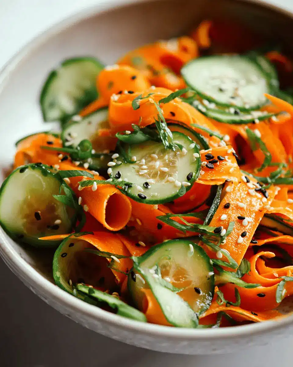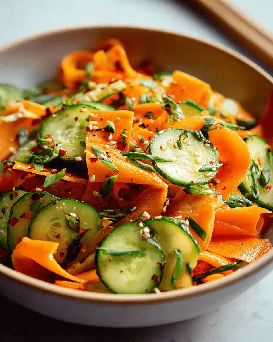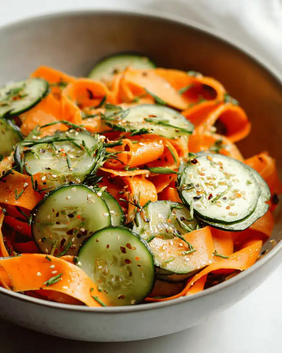 This Cucumber and Carrot Salad is a delightful addition to your meal repertoire. Its vibrant colors and refreshing flavors make it perfect for any occasion. Whether served as a side dish or light lunch, it offers a healthy, crunchy experience. Give it a try and elevate your dining table!
