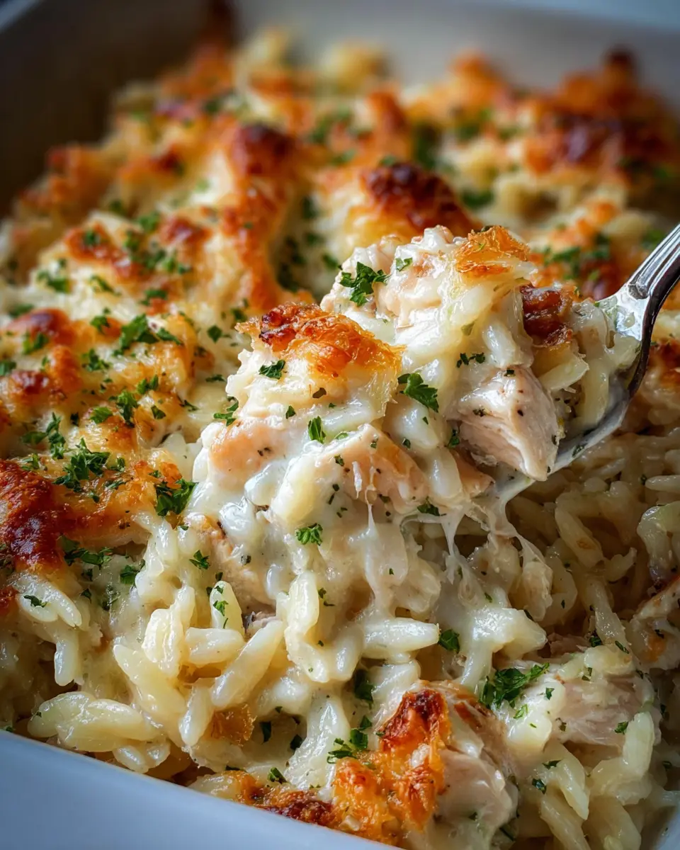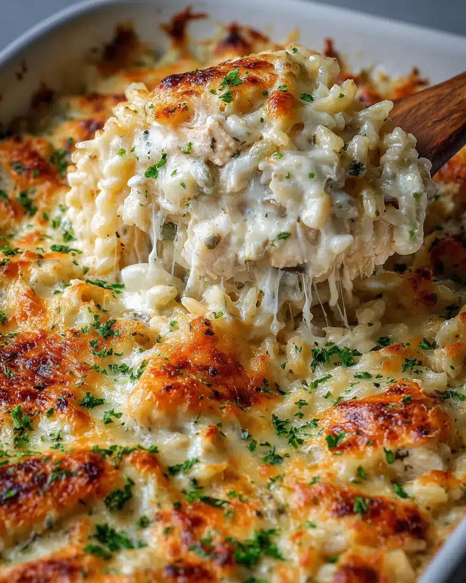 This Dump-and-Bake Chicken Alfredo Rice Casserole Recipe is your new go-to for quick and satisfying meals. With minimal prep and delicious results, it’s perfect for busy weeknights or serving friends. Enjoy the creamy flavors and cheesy goodness—all in one dish! Give it a try today!