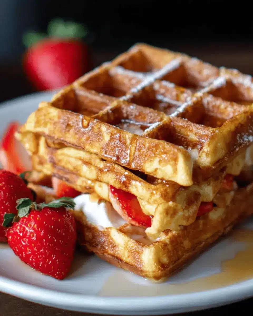 Enjoy the deliciousness of these waffles that merge the best aspects of French toast and waffles! Bon appétit! For more delicious ideas, don't forget to check out this article.