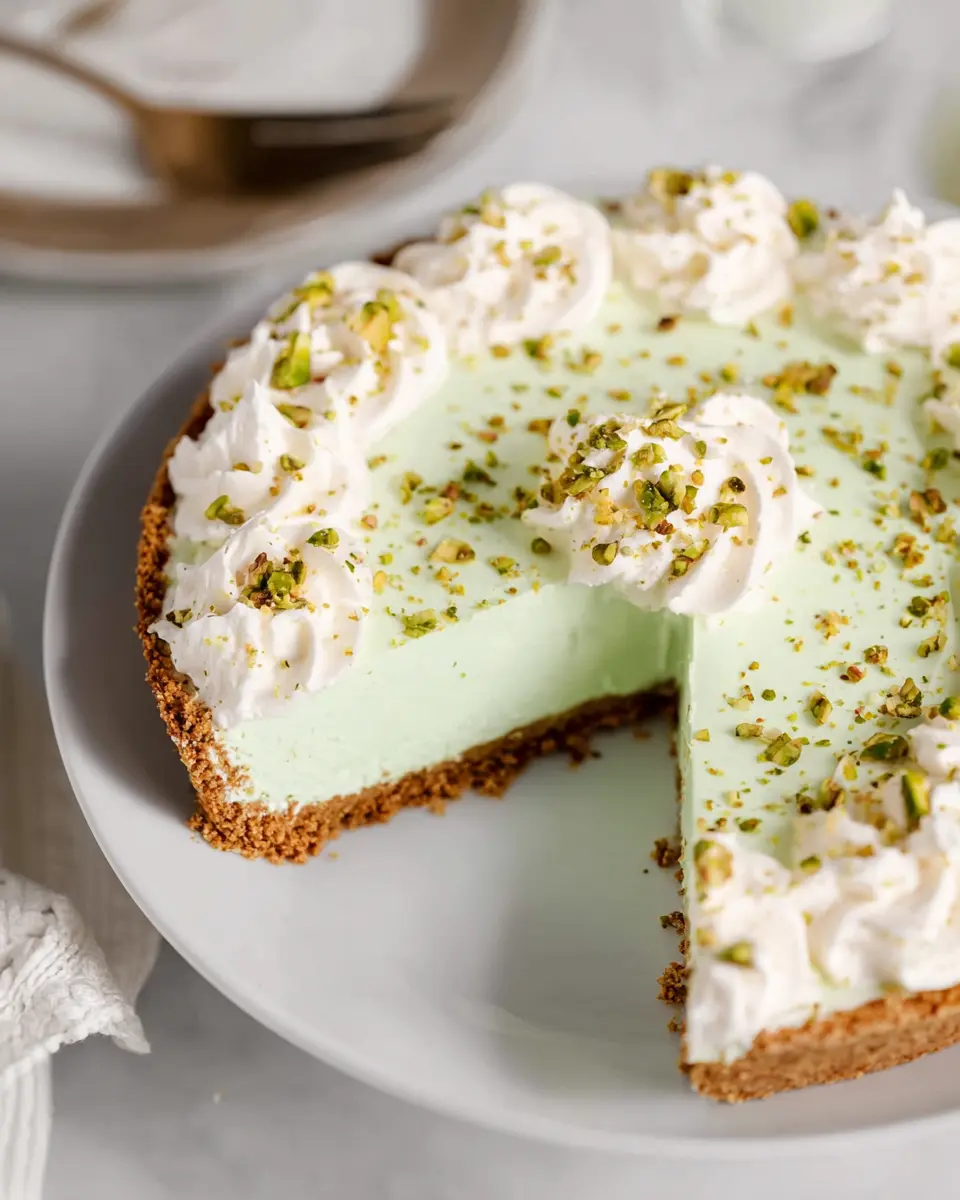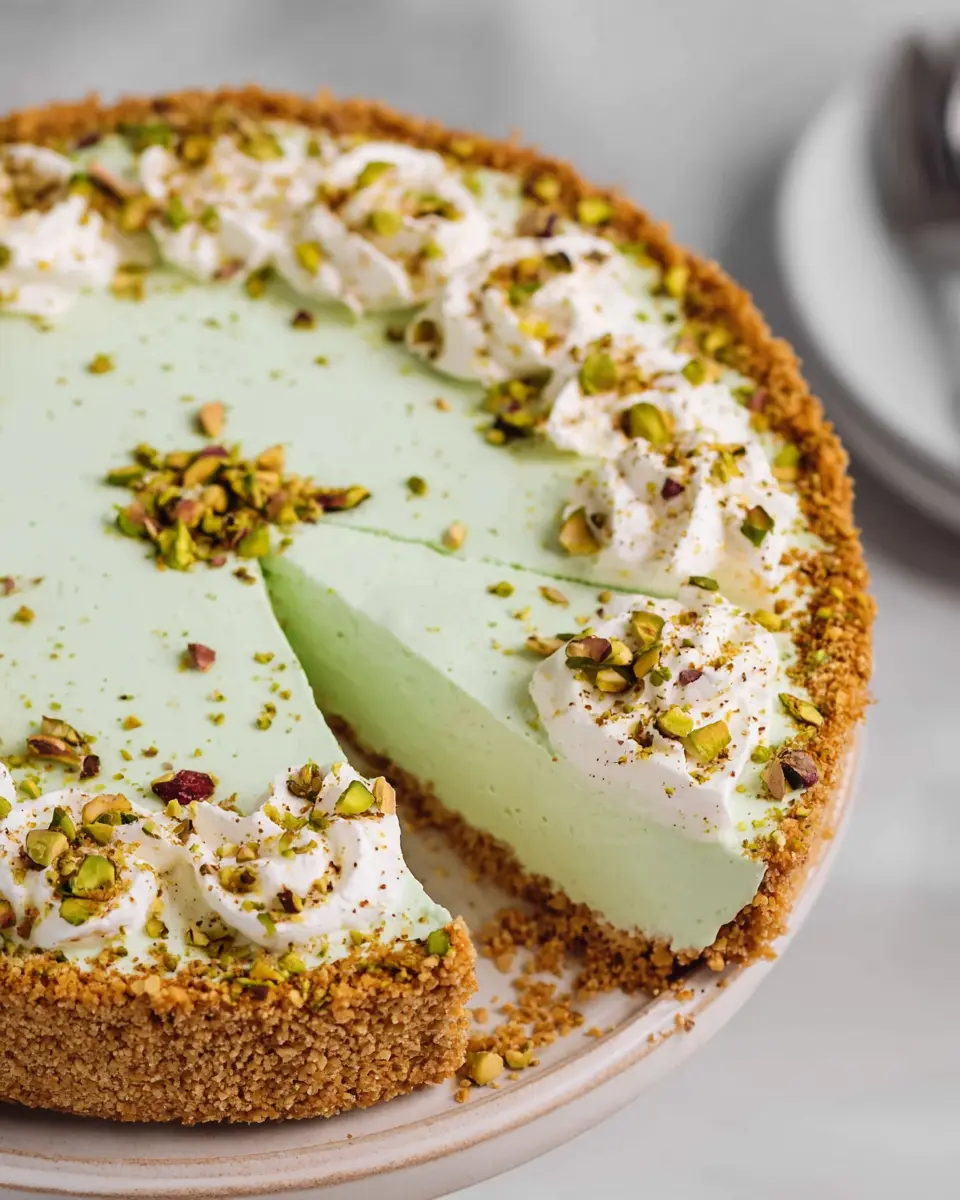 Elevate your easy no bake pistachio cream pie with a few simple garnishes. Consider a swirl of fresh whipped cream around the edges, topped with a sprinkle of crushed pistachios for that extra crunch. For an added burst of flavor, place a few maraschino cherries on top or drizzle a little chocolate syrup. Fresh mint leaves can also provide a lovely pop of color and freshness, making your pie not only delicious but visually stunning.