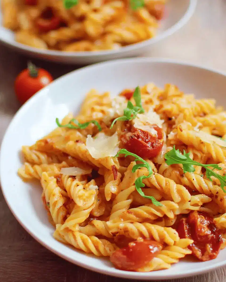Presentation matters, especially when it comes to easy tomato pasta. Serve it in a warm bowl and sprinkle freshly chopped basil and a generous grating of Parmesan on top for a burst of flavor and color. Drizzle a little balsamic glaze around the edge for an artistic touch. You can even serve the pasta in a hollowed-out bread loaf for a fun, shareable experience! Don't forget to garnish with extra sundried tomatoes—make it as visually appealing as delicious!