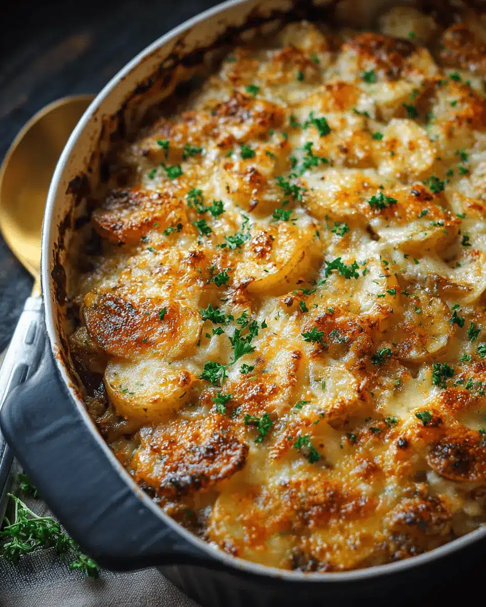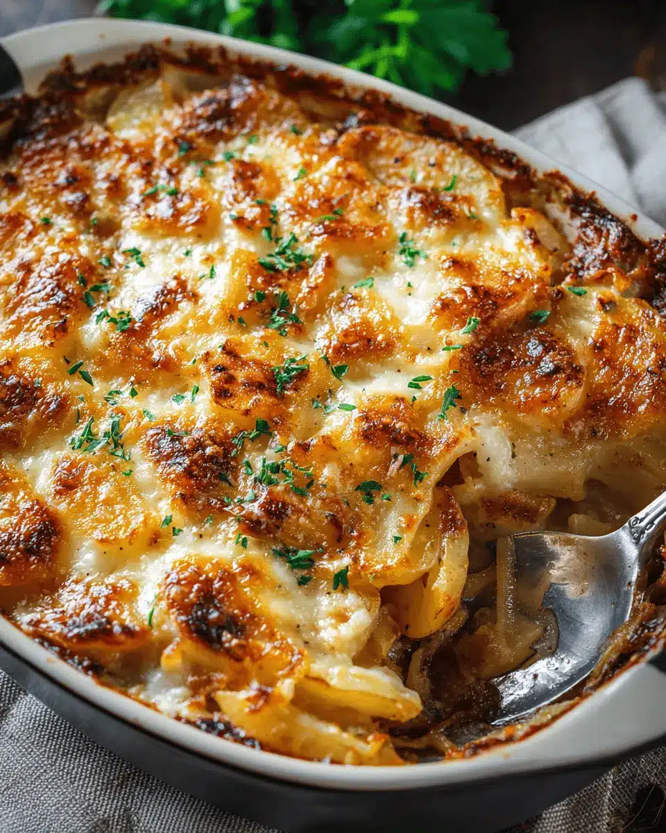 Leftover French Onion Potato Bake can be stored in an airtight container in the refrigerator for up to 3–4 days. Just make sure it cools completely before sealing it. If you want to keep it longer, consider freezing it. Wrap the dish tightly in aluminum foil or transfer it to a freezer-safe container, where it can last for about 2–3 months.