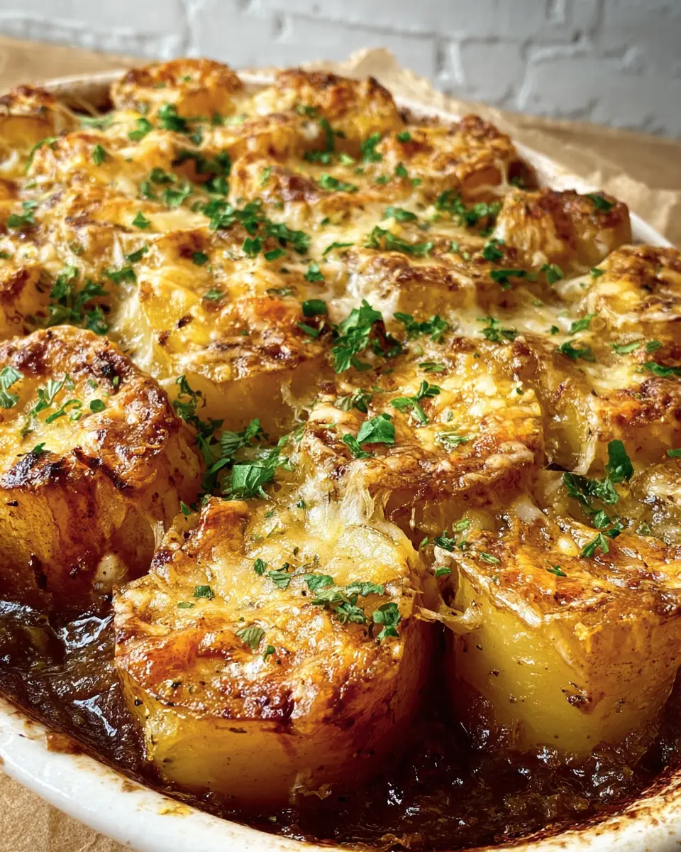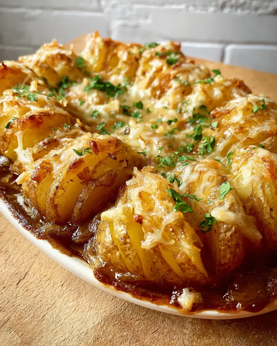 To elevate your French Onion Potatoes even further, consider adding a garnish of chopped parsley. Not only does it bring a splash of color, but it also adds a fresh, herbal note. You could even sprinkle some shredded gruyere cheese on top before baking for a melty, indulgent finish.