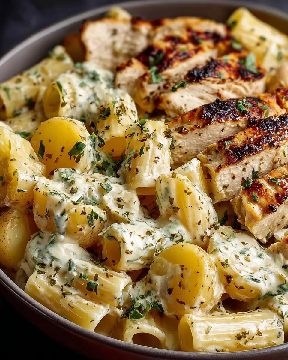 In summary, Garlic Herb Chicken Alfredo Rigatoni is a delightful dish that merges creamy flavors with tender chicken and roasted potatoes, creating a truly satisfying meal. It's perfect for weeknight dinners or casual gatherings, bringing a touch of comfort to your table. Make it your own and enjoy!