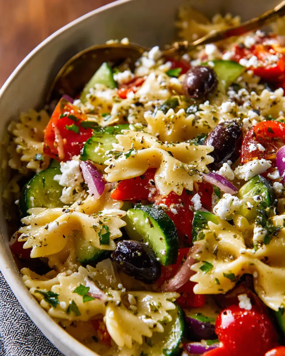 This Greek pasta salad not only looks stunning but is packed with nutrients, making it a fantastic dish for any occasion. Happy cooking!