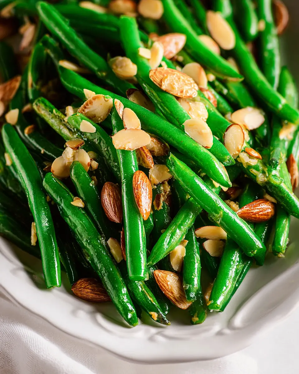 Low-key Romance: For a cozy dinner date, serve your green beans almondine with lemon-roasted salmon. Not only does the seafood enhance the citrus notes, but it also creates a visually appealing plate.
