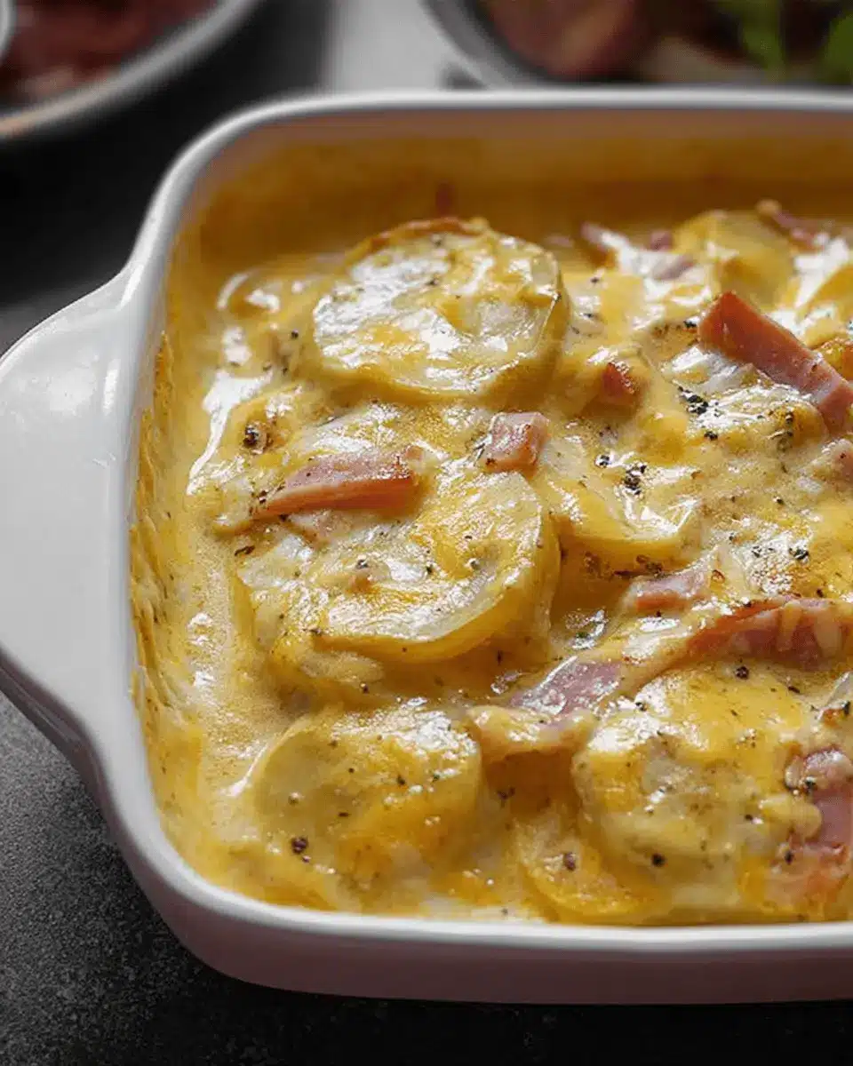 Preparing ham and potatoes au gratin in advance can save you time during busy days. Slice your potatoes and dice the chicken ham earlier in the day or the night before. Store them in a container with a little water to prevent browning. You can even make the cheese sauce ahead and refrigerate it. When you’re ready to bake, simply combine everything in the dish and pop it in the oven.