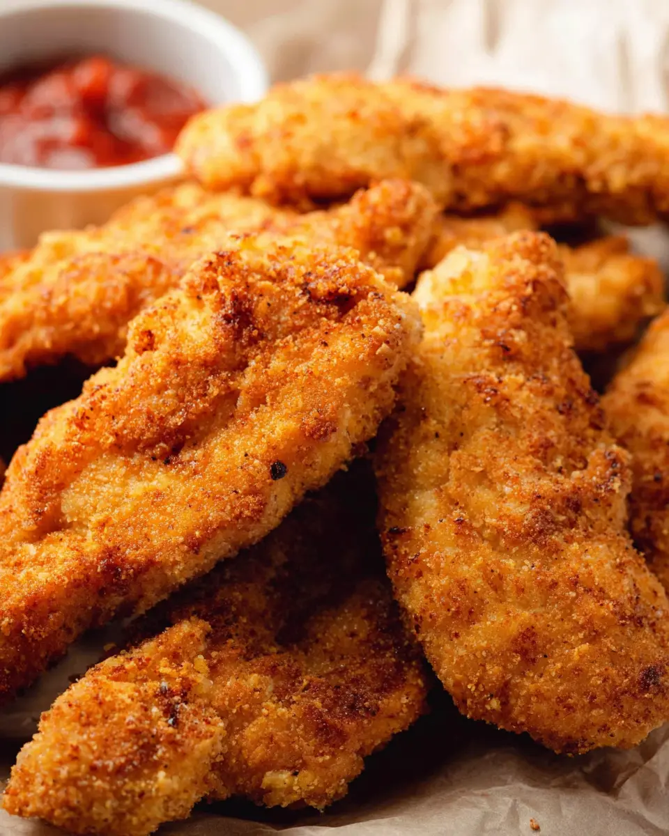 Achieving crispy homemade chicken tenders is all about the breading process! Make sure to shake off excess flour and egg wash for the best coating. It’s the panko that really brings the crunch, so don’t skimp on that.
