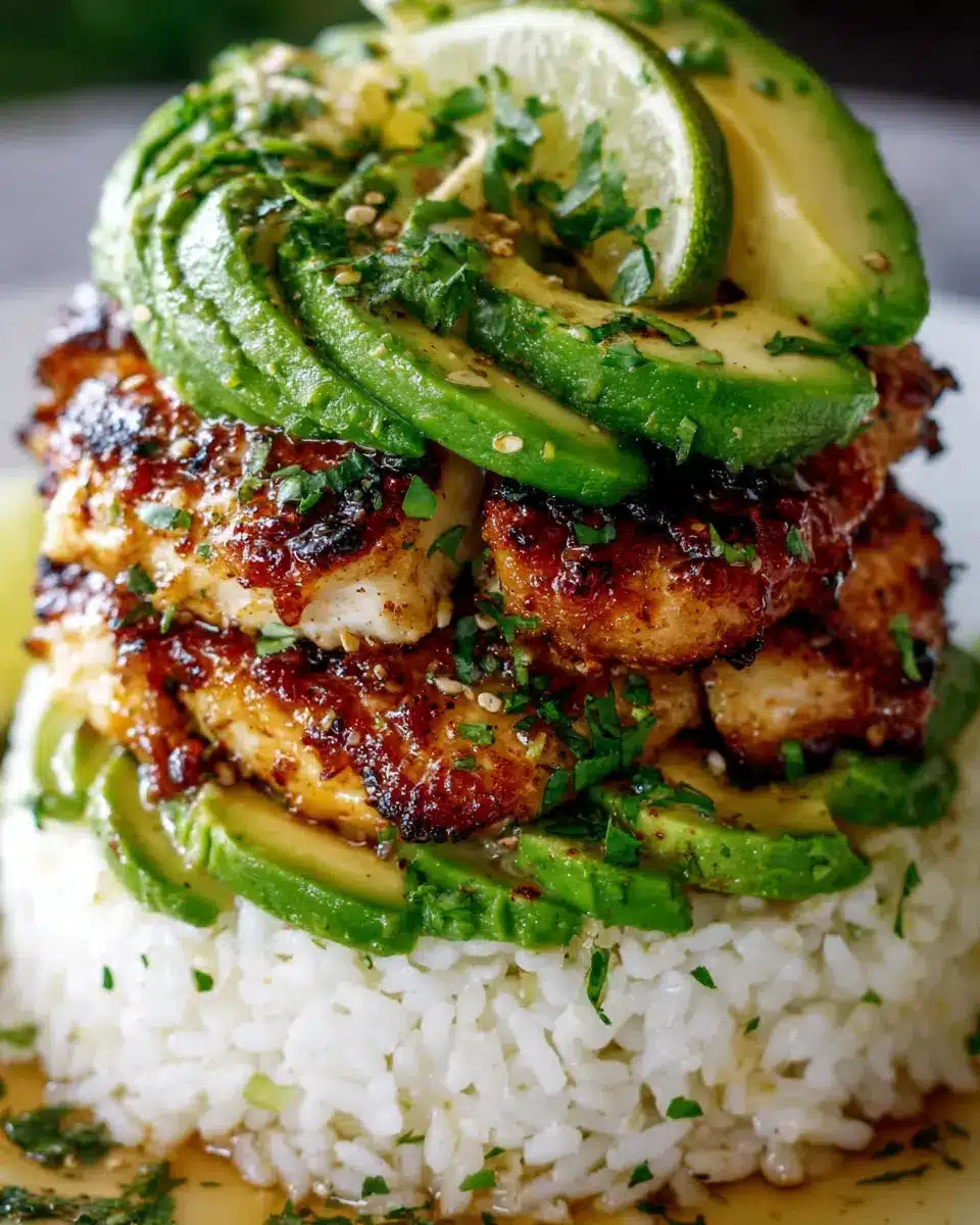 Introduction to Honey Lime Chicken & Avocado Rice Stack