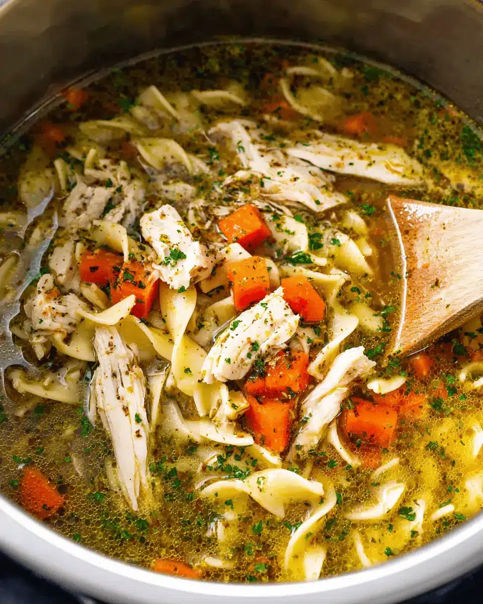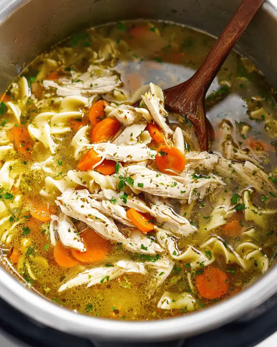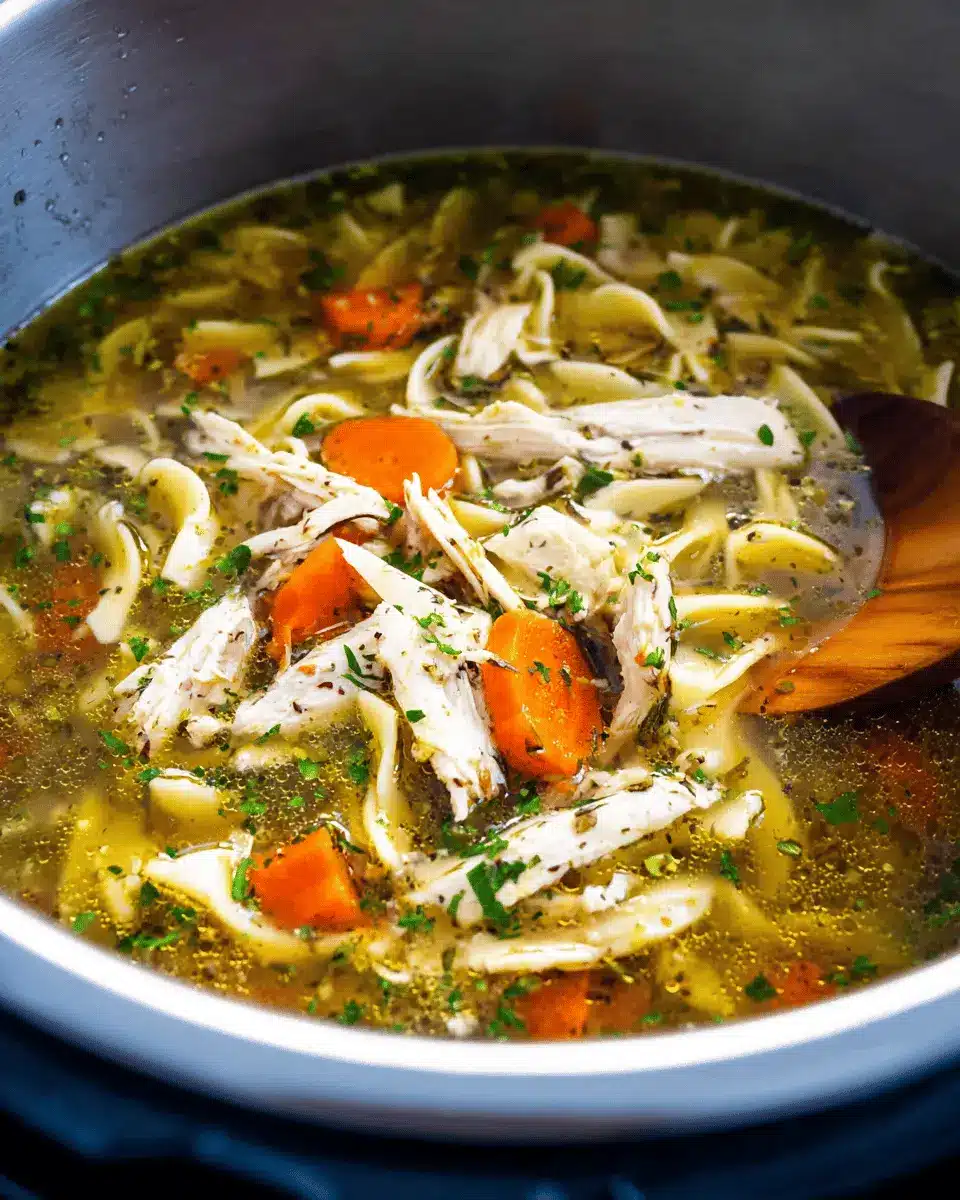 Planning ahead? You can easily prepare your Instant Pot Chicken Noodle Soup in advance! Just follow the recipe up until adding the noodles, then let the soup cool completely before transferring it to an airtight container. Store it in the fridge for up to three days. When you’re ready to enjoy, simply reheat and add the noodles for a quick, delicious meal.