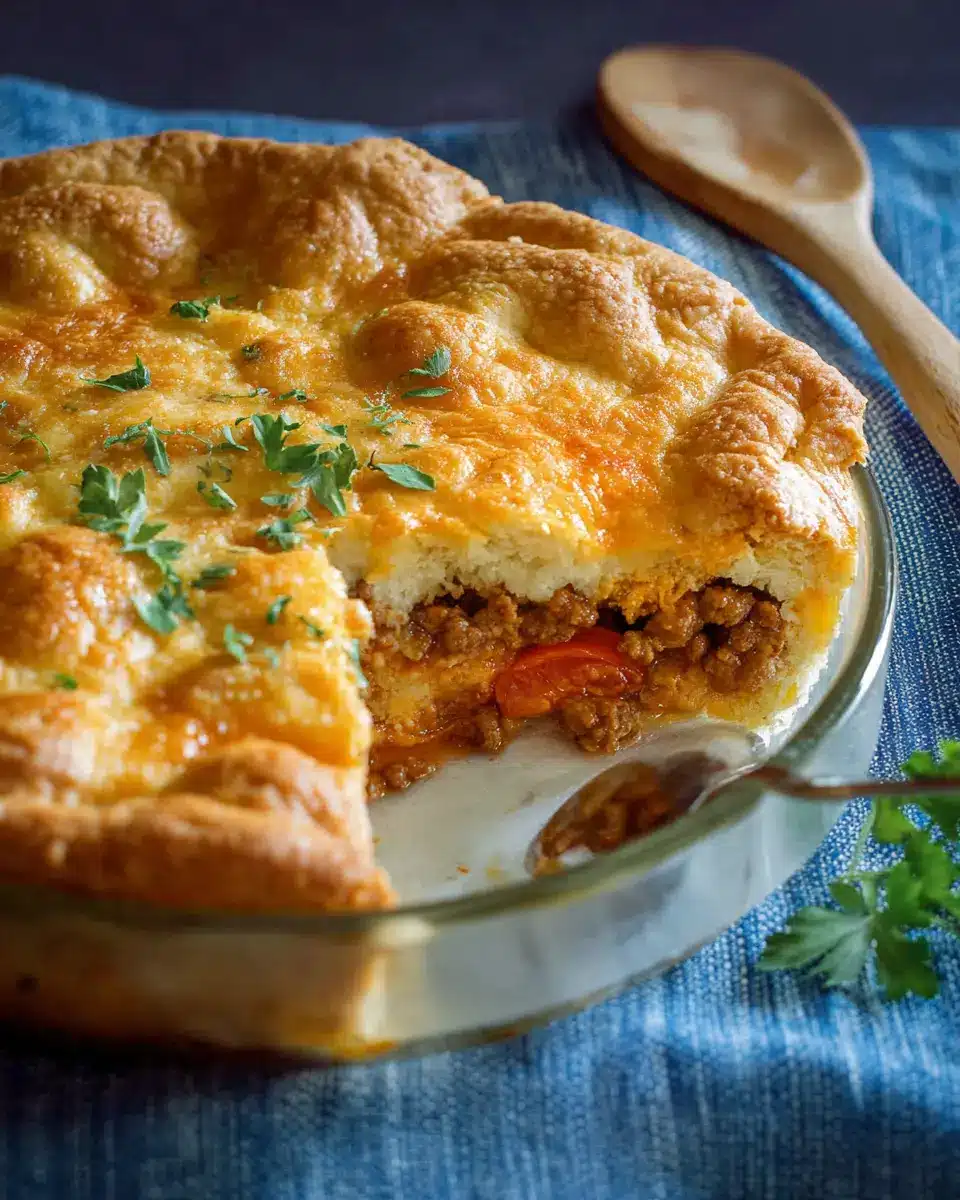 Now comes the fun part! Transfer the hot beef mixture into an ungreased 9 ½ or 10-inch deep-dish pie pan, or opt for an 11x7-inch baking dish. Spoon the creamy cheese mixture over the beef, spreading it out evenly. Unroll the 8-ounce can of crescent dough and gently press the seams together before laying it over the cheese layer. This creates a lovely top crust which adds texture. In a small bowl, mix ¼ cup grated Parmesan cheese and 2 tablespoons of melted butter, then spread this mix over the dough for an extra flavor boost.