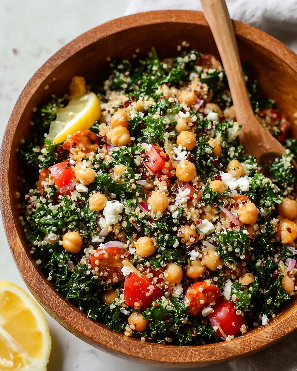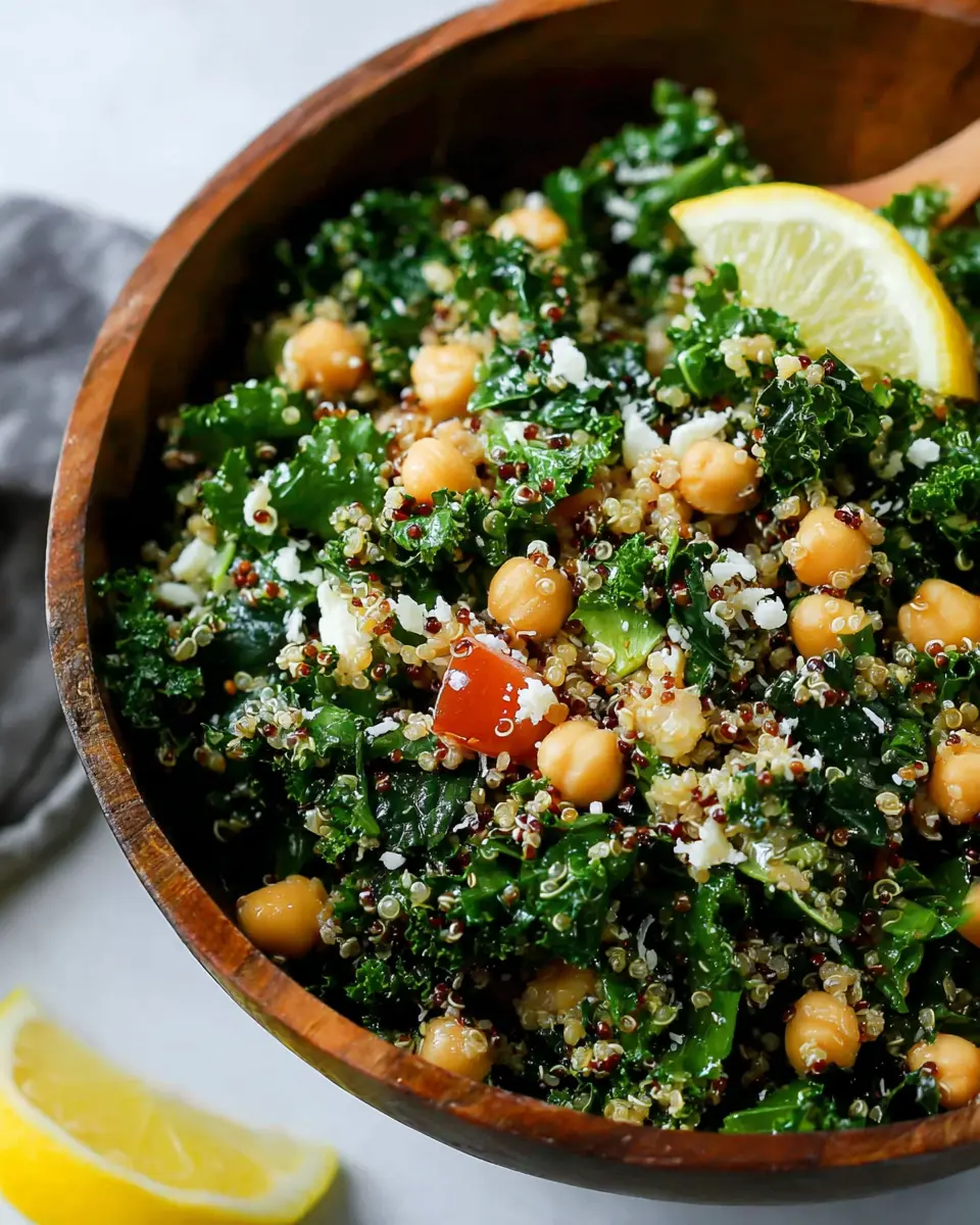 In summary, the Kale Quinoa and Chickpea Salad with Lemon Vinaigrette is a delightful blend of flavors and textures, making it a wholesome option for any meal. Rich in nutrients and easy to prepare, this salad is perfect for a quick lunch or a nutritious side dish. Enjoy!
