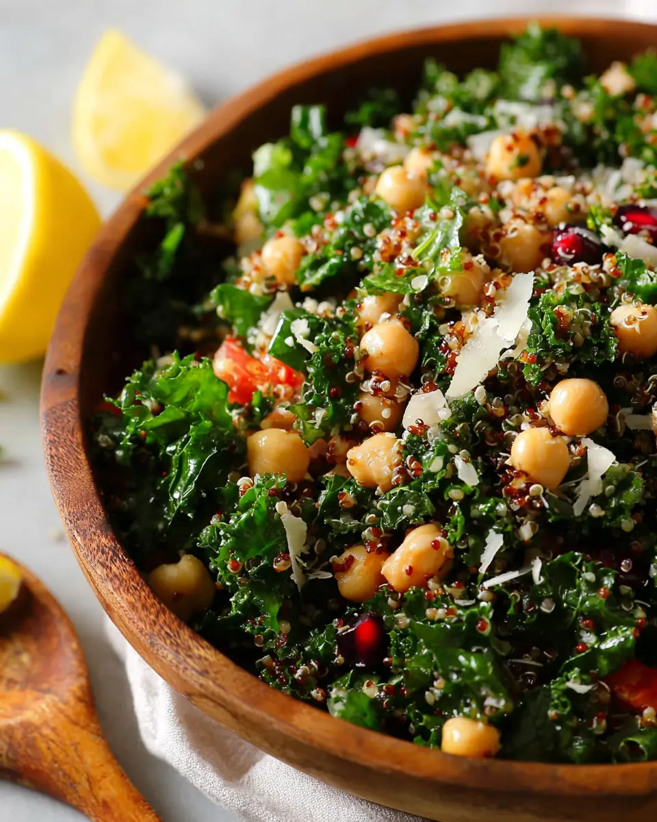 In summary, the Kale Quinoa and Chickpea Salad with Lemon Vinaigrette is a delightful blend of flavors and textures, making it a wholesome option for any meal. Rich in nutrients and easy to prepare, this salad is perfect for a quick lunch or a nutritious side dish. Enjoy!