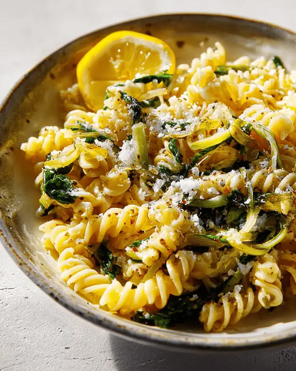 Introduction to Lemony Spinach and Leek Fusilli Pasta