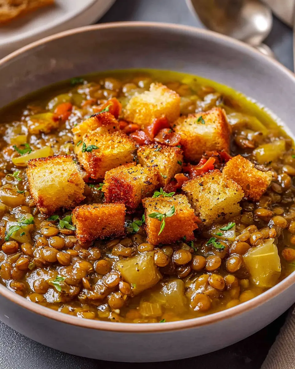 Introduction to Lentil Potato Soup with Homemade Croutons