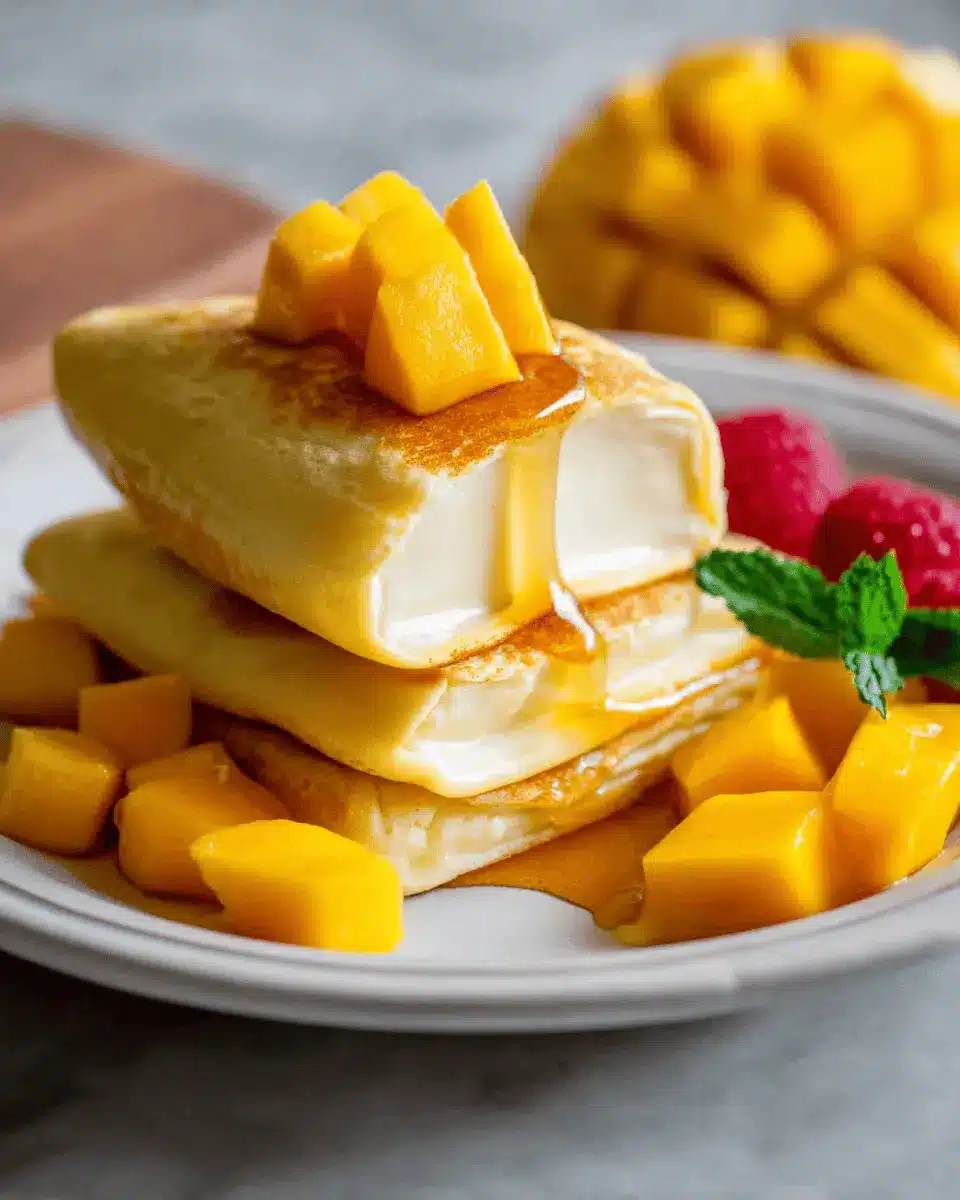 Finally, it’s time to savor your mango pancakes! These are best enjoyed soon after assembly, as they lose their creaminess over time. Pair them with a cup of tea for a delightful afternoon treat or enjoy them for dessert after a meal. Trust me, the satisfaction of making these yourself will be worth every effort!