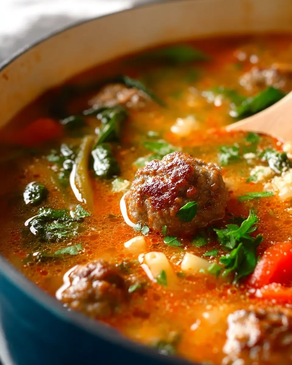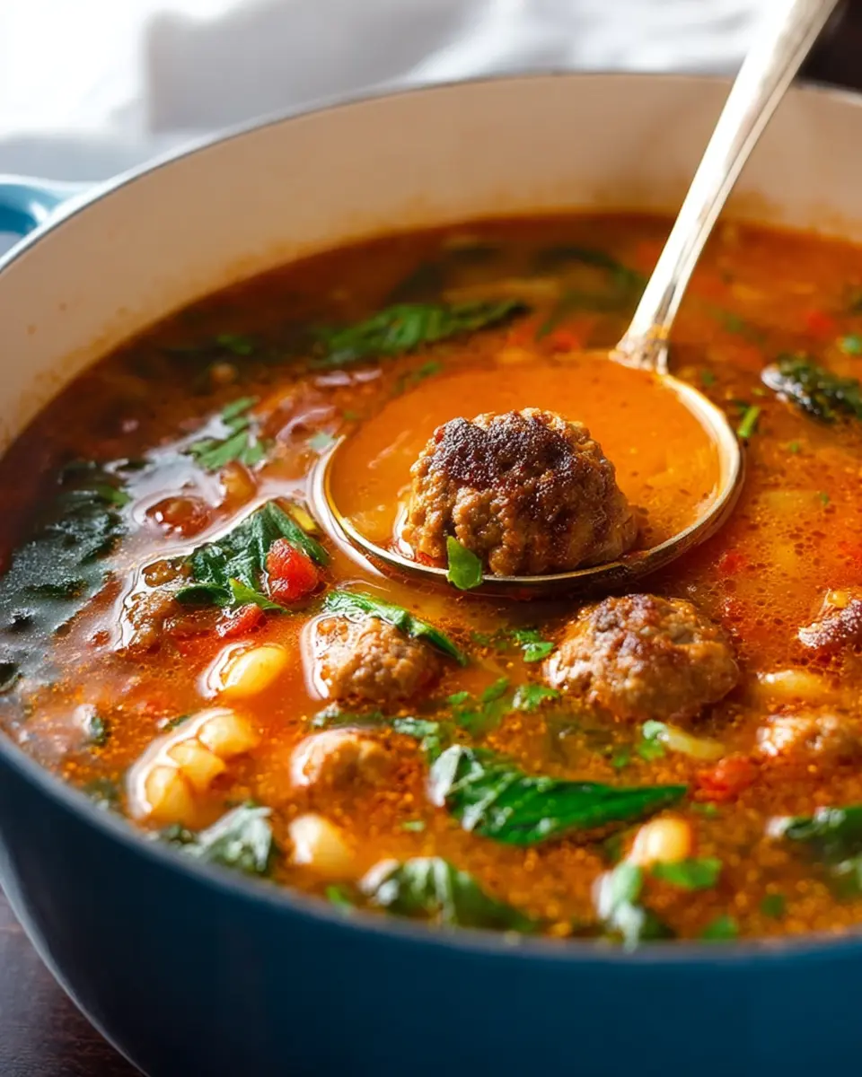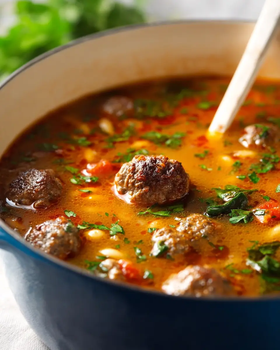 In conclusion, this meatball soup is a delightful, hearty dish that brings warmth to your table. Its robust flavors and comforting ingredients make it perfect for any occasion. Enjoy with loved ones and make memorable moments, because good food is best shared! For more delicious recipes, check out Food Network or Bon Appétit.