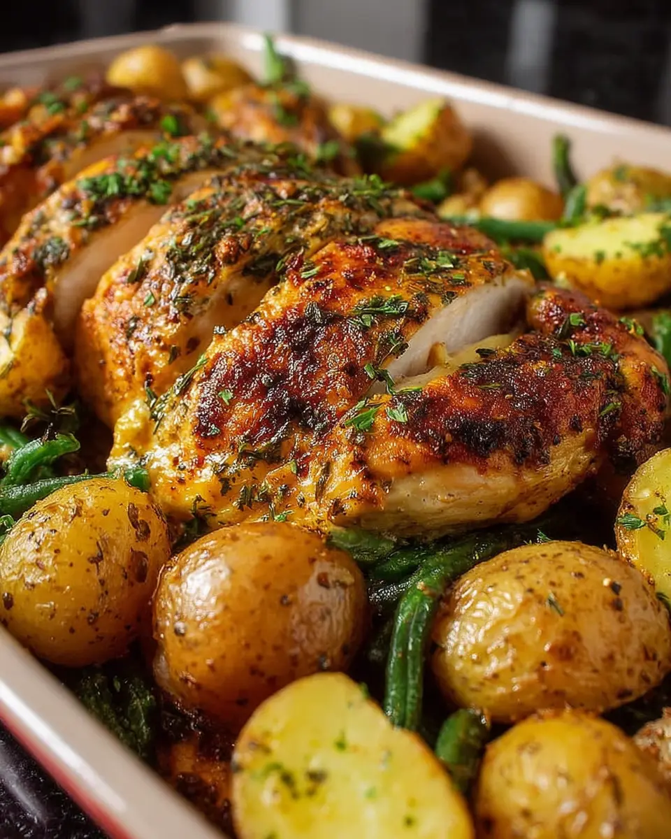 If you’re a fan of heat, try adding spices like cayenne pepper, crushed red pepper flakes, or even a splash of hot sauce to the chicken and potatoes. This twist adds a lovely kick that perfectly complements the savory flavors. Serve with a cooling yogurt sauce for balance.