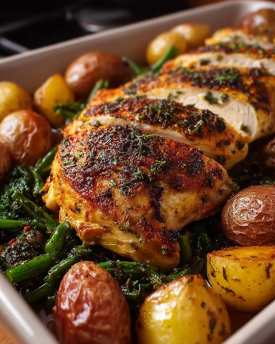 Imagine crisp, golden chicken thighs nestled among flavorful potatoes and vibrant greens, all roasted to perfection in just one pan. It’s a meal that’s deliciously comforting yet easy to whip up after a long day of work or studying. Plus, the clean-up is a breeze—who has time to wash a mountain of dishes when you’re already running against the clock?