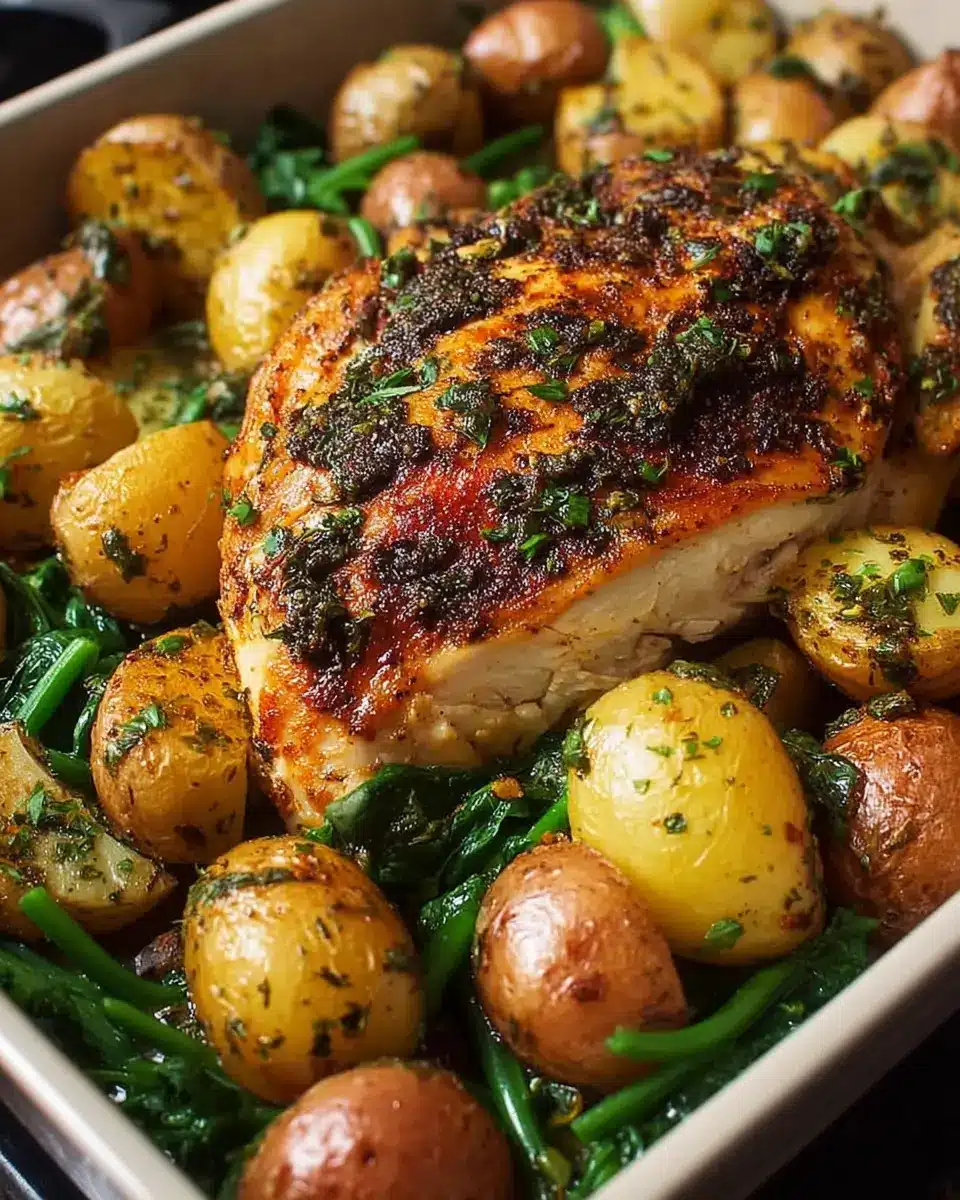 If you’re a fan of heat, try adding spices like cayenne pepper, crushed red pepper flakes, or even a splash of hot sauce to the chicken and potatoes. This twist adds a lovely kick that perfectly complements the savory flavors. Serve with a cooling yogurt sauce for balance.