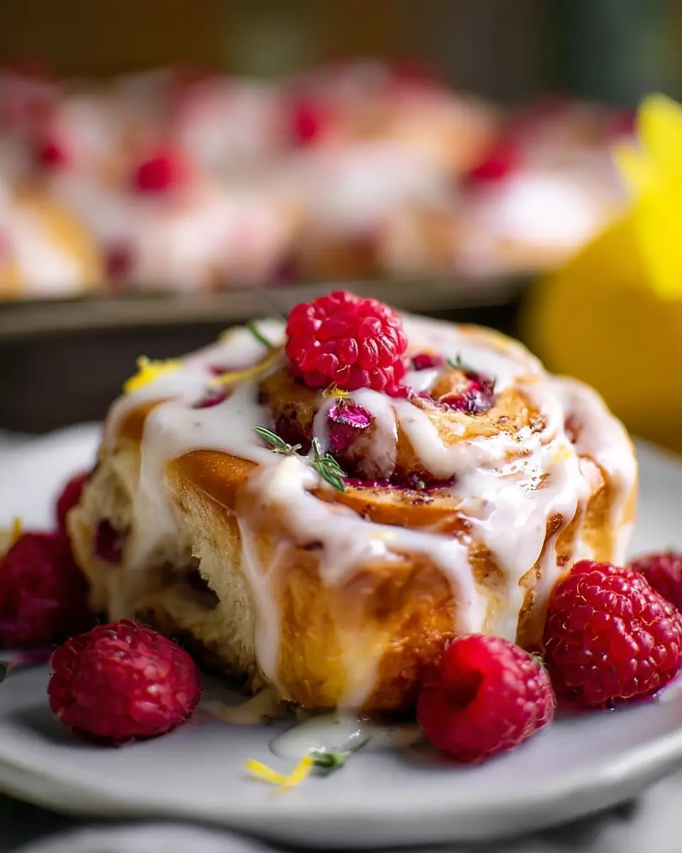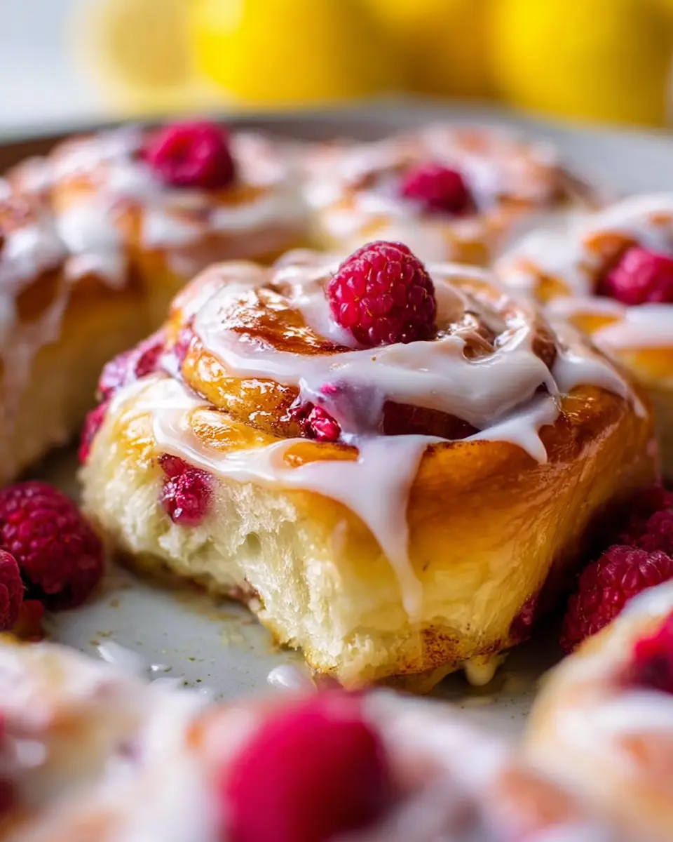 Overnight Raspberry Sweet Rolls with Lemon Cream Cheese Glaze