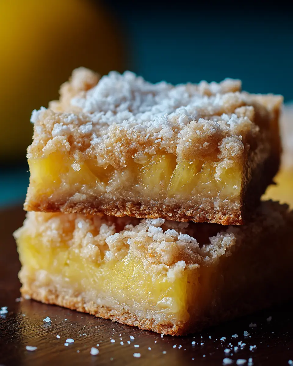 Once your bars are completely cool, it’s time for the finishing touch: a generous dusting of powdered sugar! This not only adds a lovely sweetness but also a visually appealing contrast to the vibrant pineapple filling. Slice them into squares, serve, and watch your friends and family swoon over these tropical treats.