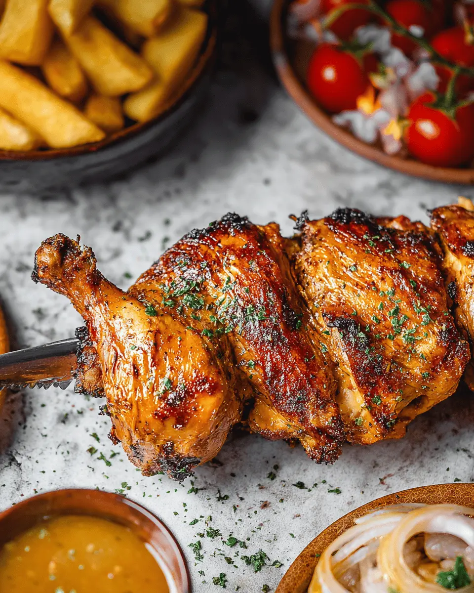 Once your chicken is golden and cooked through, let it rest for a few minutes. This allows the juices to redistribute for moist, tender meat. Serve your Pollo a la Brasa with crispy fries and a side of ají de pollería for the ultimate experience. Don't forget to capture the moment with a few photos for Instagram—your friends will want to know your secrets!