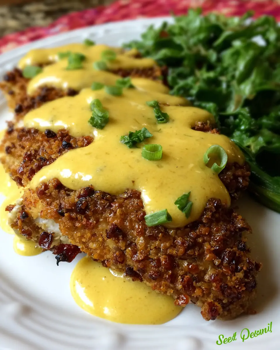 Incorporating Pretzel-Crusted Chicken Breasts into your dinner plans is a delightful way to impress family or guests. The crunchy pretzel coating combined with a luscious cheesy-mustard sauce offers a savory experience that’s hard to resist. This dish turns weeknight dinners into something special—enjoy every bite!