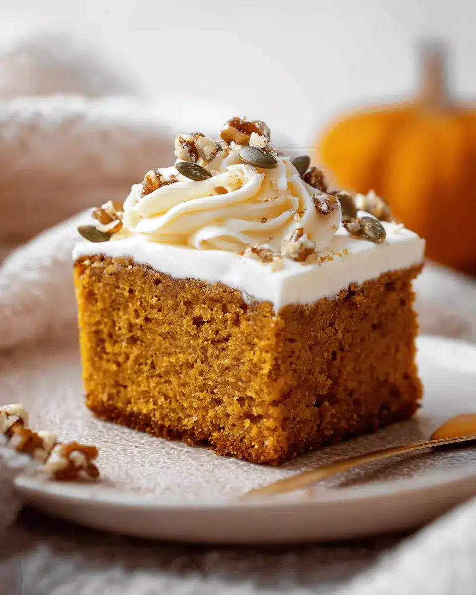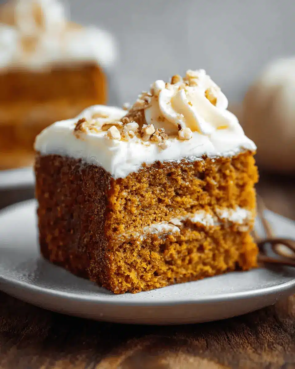 In summary, this delightful pumpkin cake is perfect for any occasion, combining moistness and flavor that will leave your guests wanting more. With an easy-to-follow recipe and a velvety cream cheese frosting, it’s sure to become a favorite in your dessert repertoire. Try it out, and enjoy every bite!
