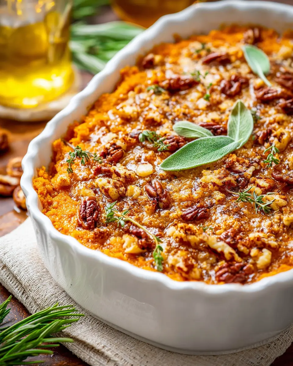For a vibrant, vegetarian rendition, try incorporating extra vegetables into your casserole. Think sautéed spinach, roasted bell peppers, or even tender green beans. These additions not only boost nutritional value but also add beautiful color and texture to your savory sweet potato casserole. Just sauté the veggies beforehand to elevate their flavors, then mix them into the sweet potato base before adding the topping. Enjoy experimenting with seasonal produce!
