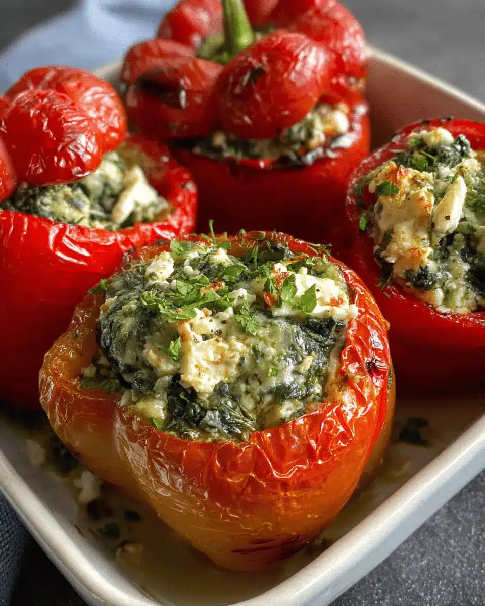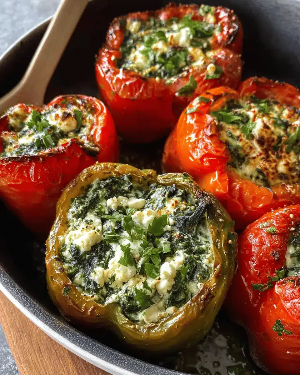 In summary, spinach and feta stuffed peppers are not only a delicious vegetarian dish but also a canvas for your culinary creativity. With their vibrant colors and wholesome ingredients, these peppers serve as a satisfying meal that can impress guests or simply provide a comforting family dinner. Give this recipe a try and enjoy a burst of flavors with every bite!