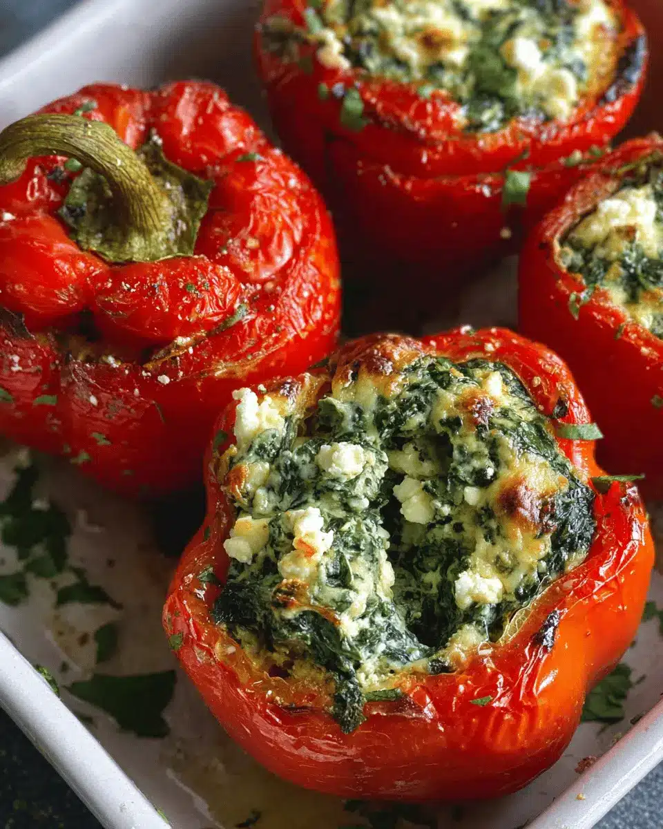 Imagine biting into a tender, roasted bell pepper filled with a savory mixture of baby spinach, feta cheese, and aromatic herbs. It's a simple yet elegant meal that's great for weeknight dinners or meal prep. Nutrient-dense and packed with flavor, these stuffed peppers are loaded with vitamins A and C, making them not just delicious but also a healthy choice.