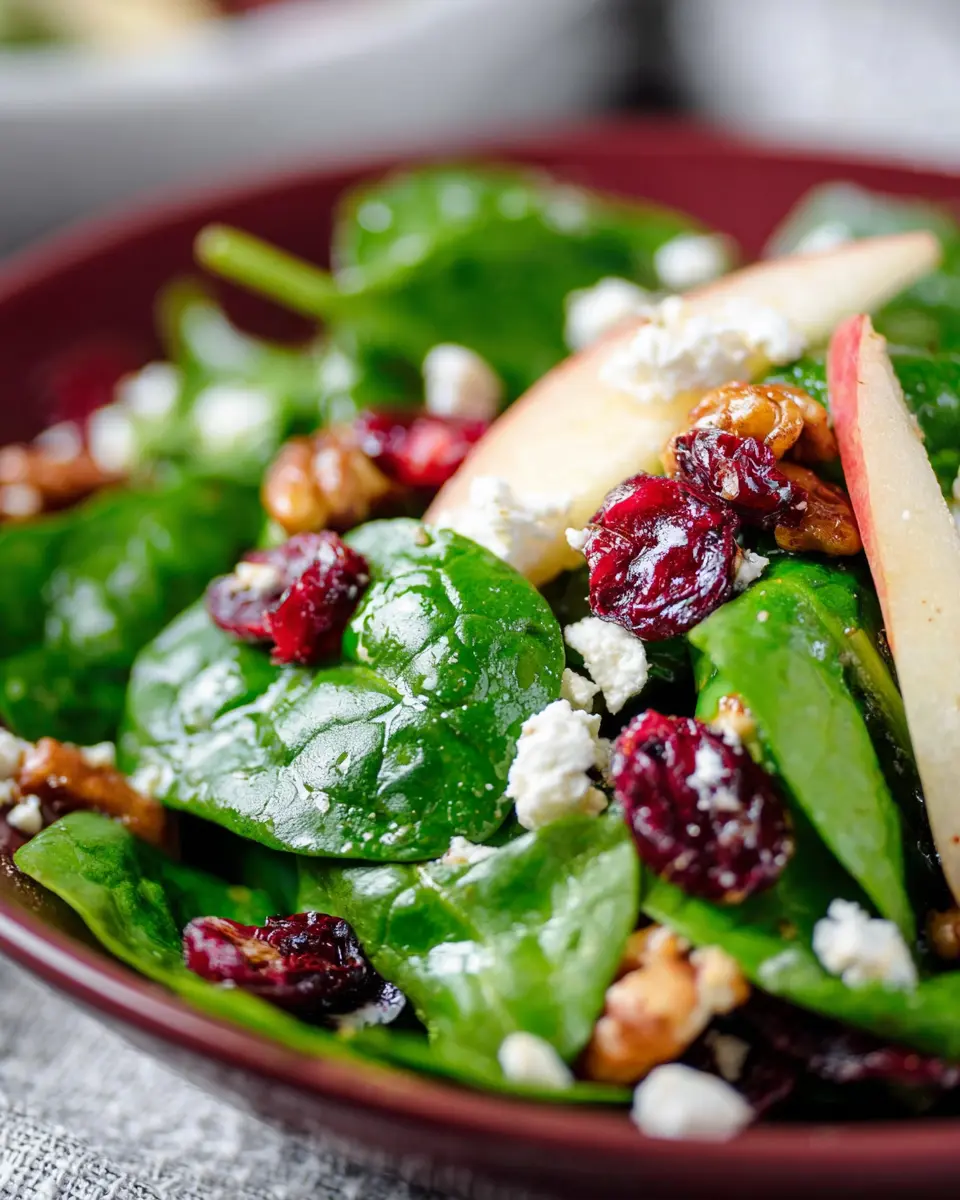 For your spinach cranberry salad recipe, opt for fresh, bright green spinach leaves. Baby spinach is tender and has a milder flavor, making it an excellent choice. Look for leaves that are crisp and free from blemishes or yellowing. If you can't find fresh spinach, consider using pre-washed organic spinach for convenience.